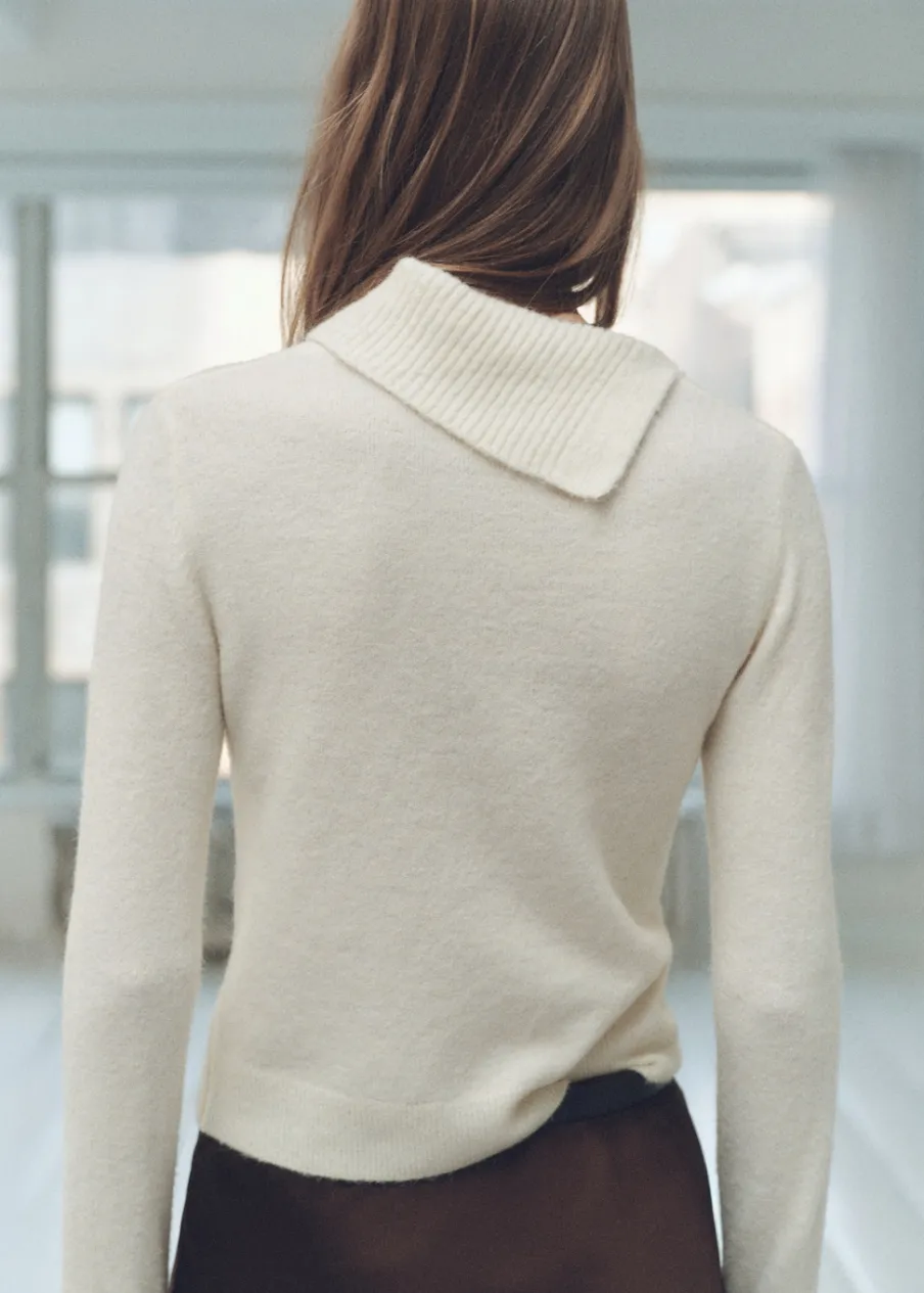 Dzianina. Model prosty. Długi rękaw. Kołnierz z wykładanymi klapami. Bez zapięcia.