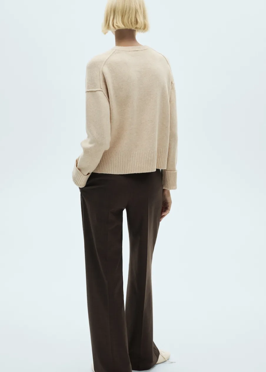 Dzianinowa tkanina. Model prosty. Okrągły dekolt. Długi rękaw. Bez zapięcia. Ściągaczowe wykończenia. Modelka ma 177 cm wzrostu i nosi rozmiar S/36.