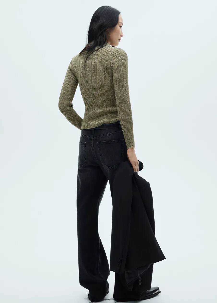 OpisTkanina z cienkiej dzianiny. Tkanina ze ściągaczowej dzianiny. Tkanina lureks. Koszulowy kołnierz. Długi rękaw….