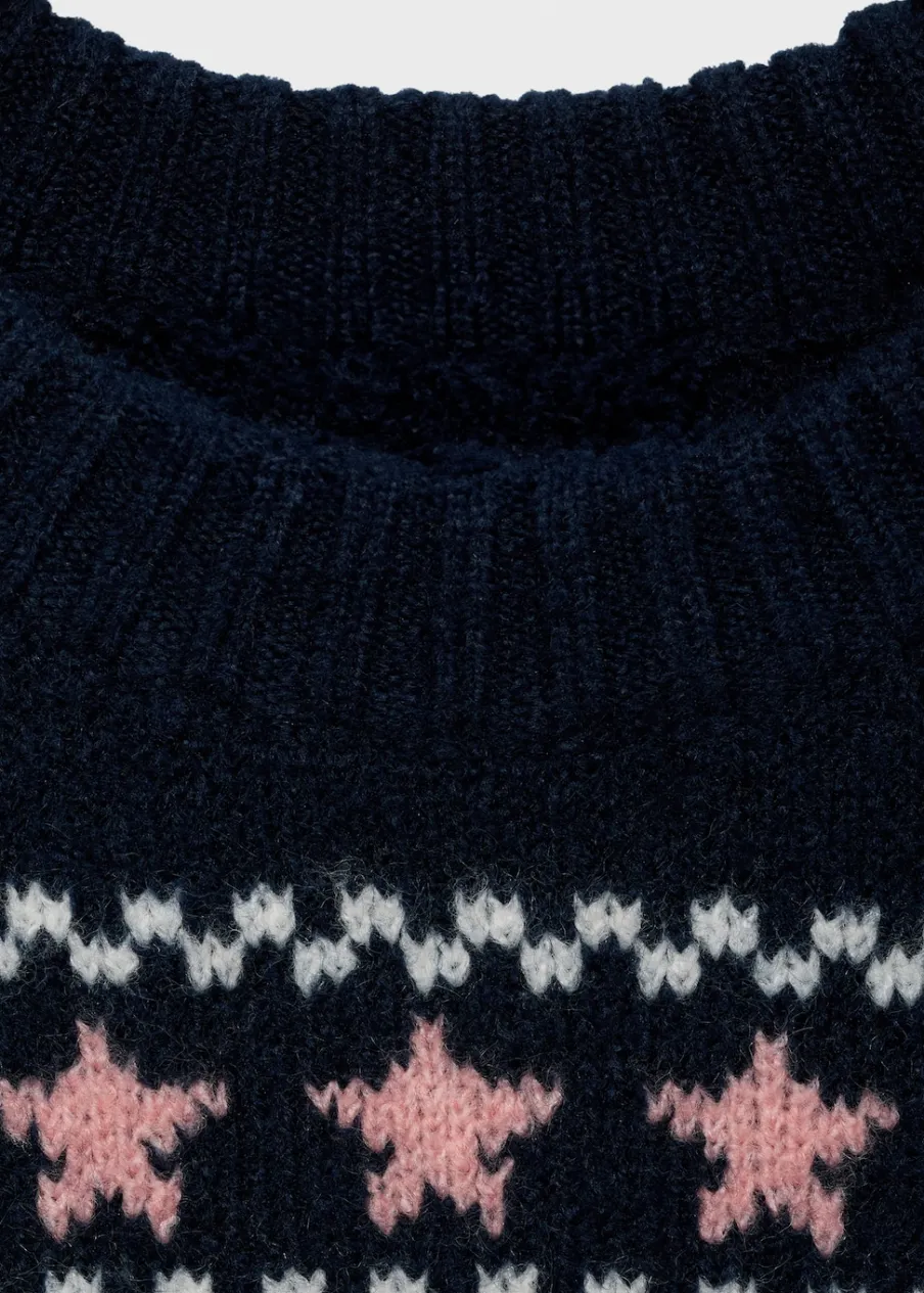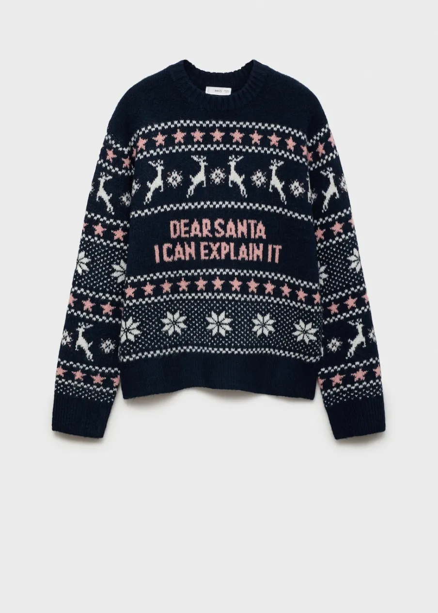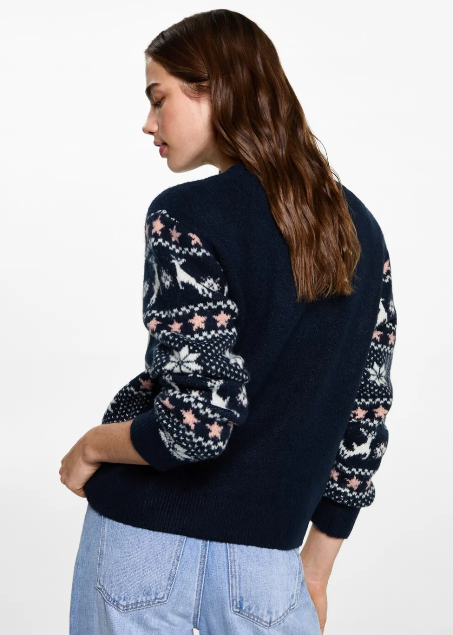 Tkanina z grubej dzianiny. Tkanina żakardowa z bożonarodzeniowym motywem. Okrągły dekolt. Długi rękaw. Kolekcja Bożonarodzeniowa.