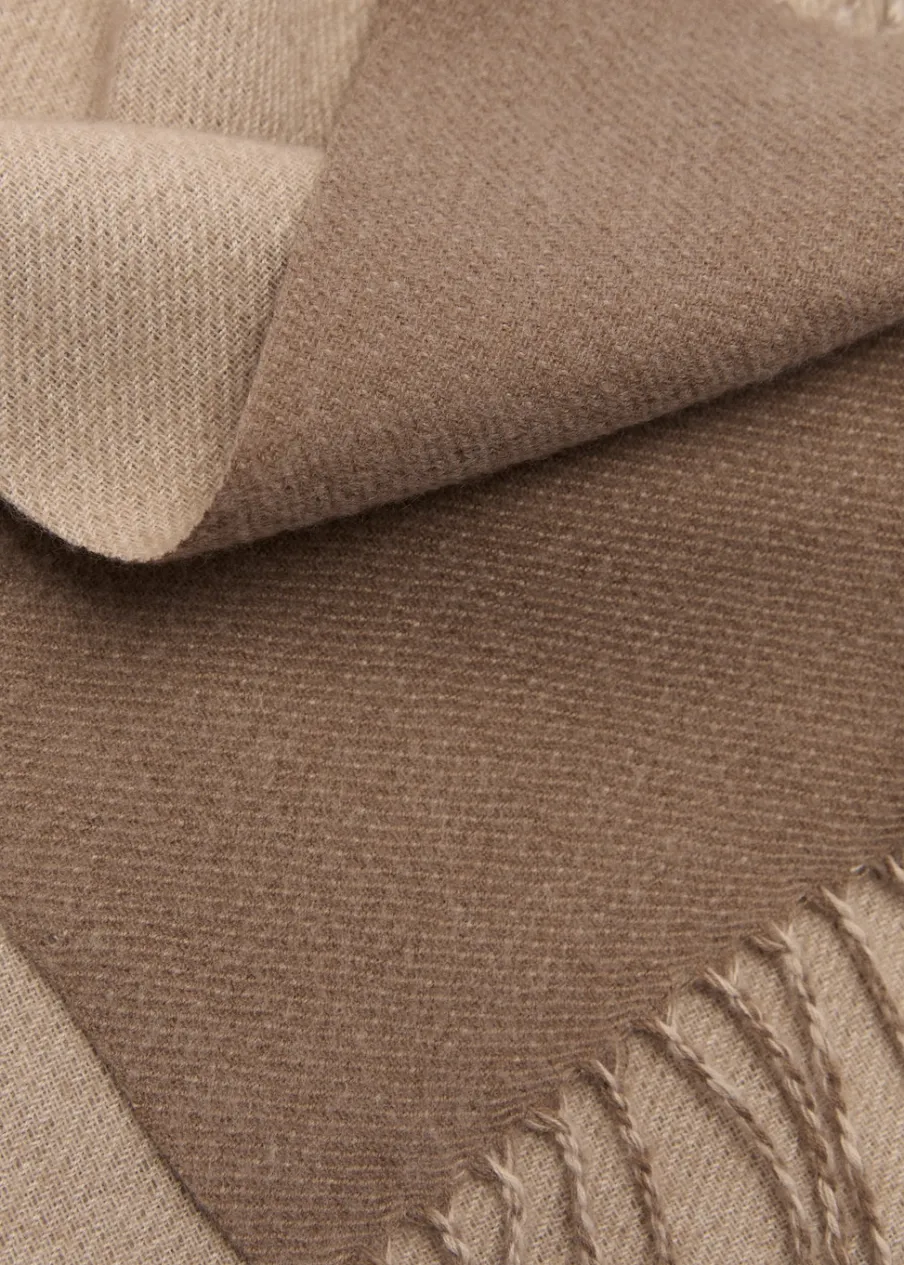 Materiały z recyklingu. Dwukolorowy deseń. Frędzlowe wykończenie.