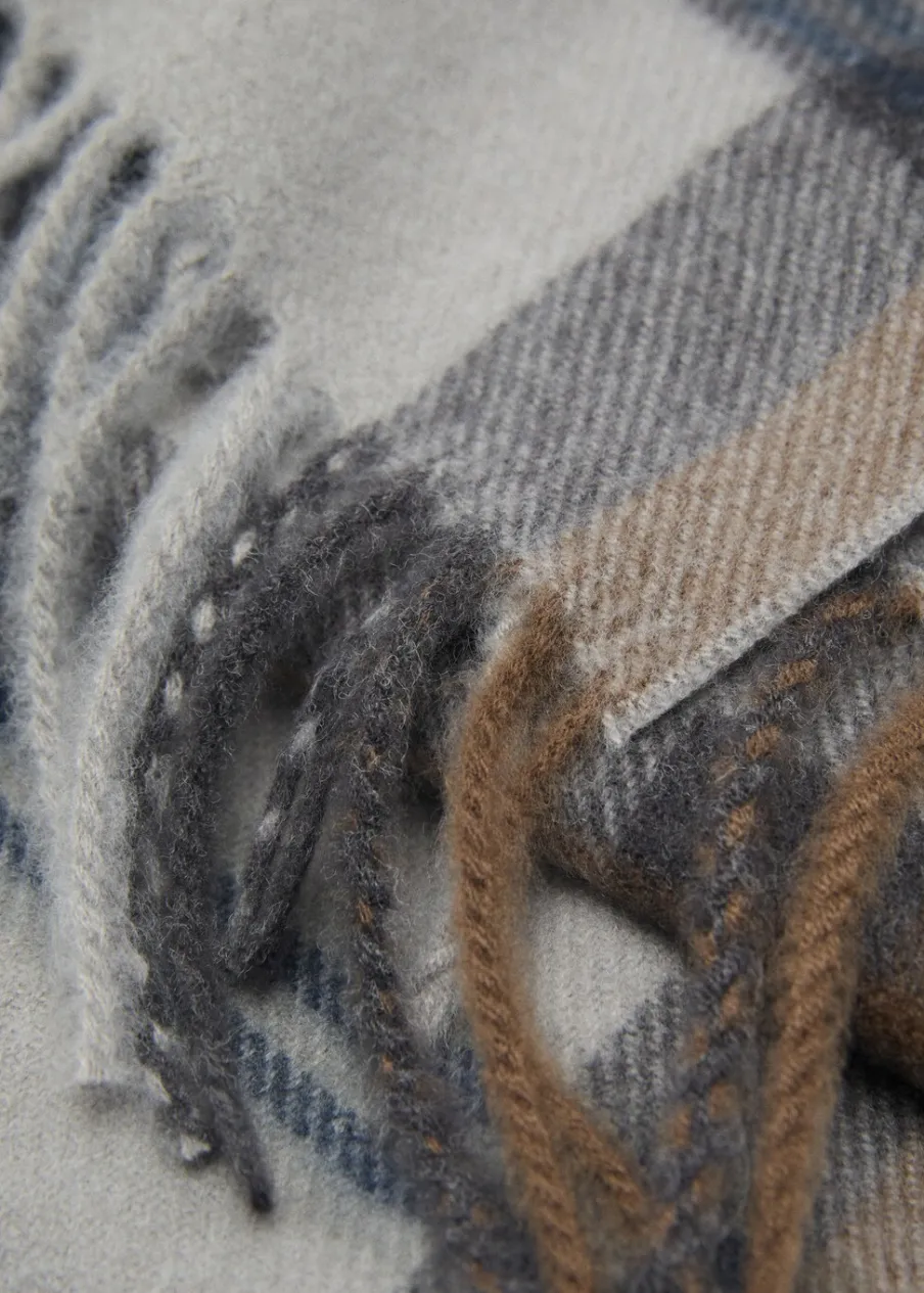 Materiały z recyklingu. Wzór w szkocką kratę. Wykończenia z frędzlami.