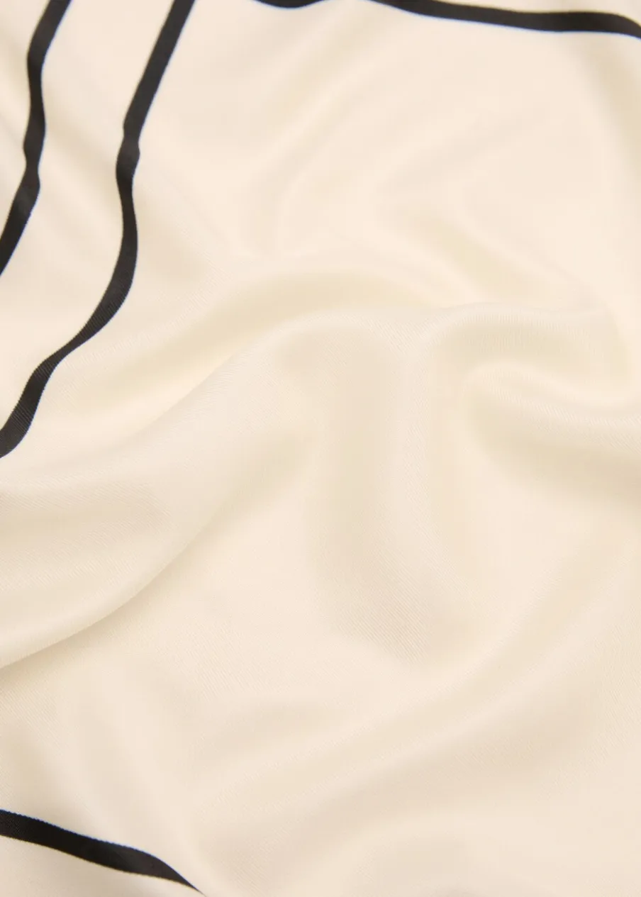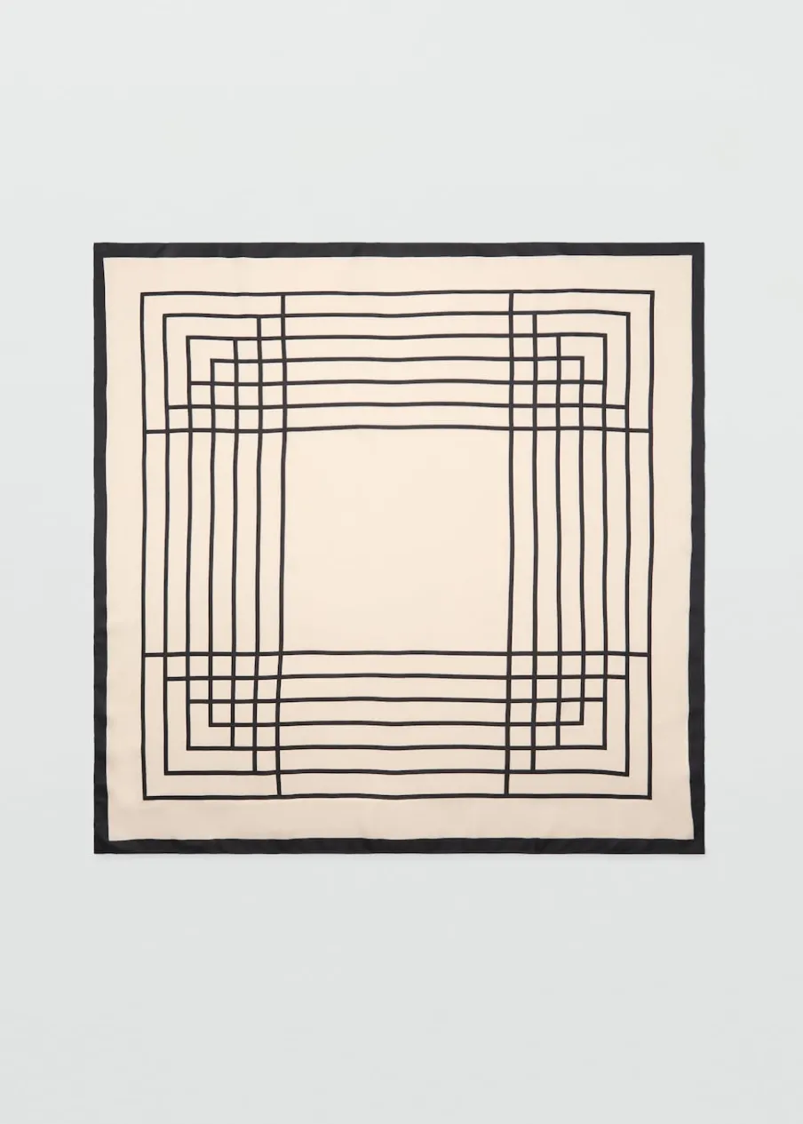 OpisSatynowa tkanina. Lejąca tkanina. Kwadratowy fason. Geometryczny wzór.