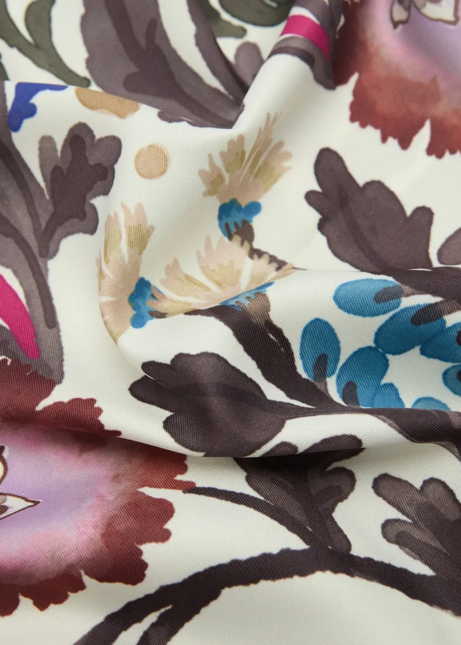 OpisSatynowa tkanina. Lejąca tkanina. Wzór w kwiaty.