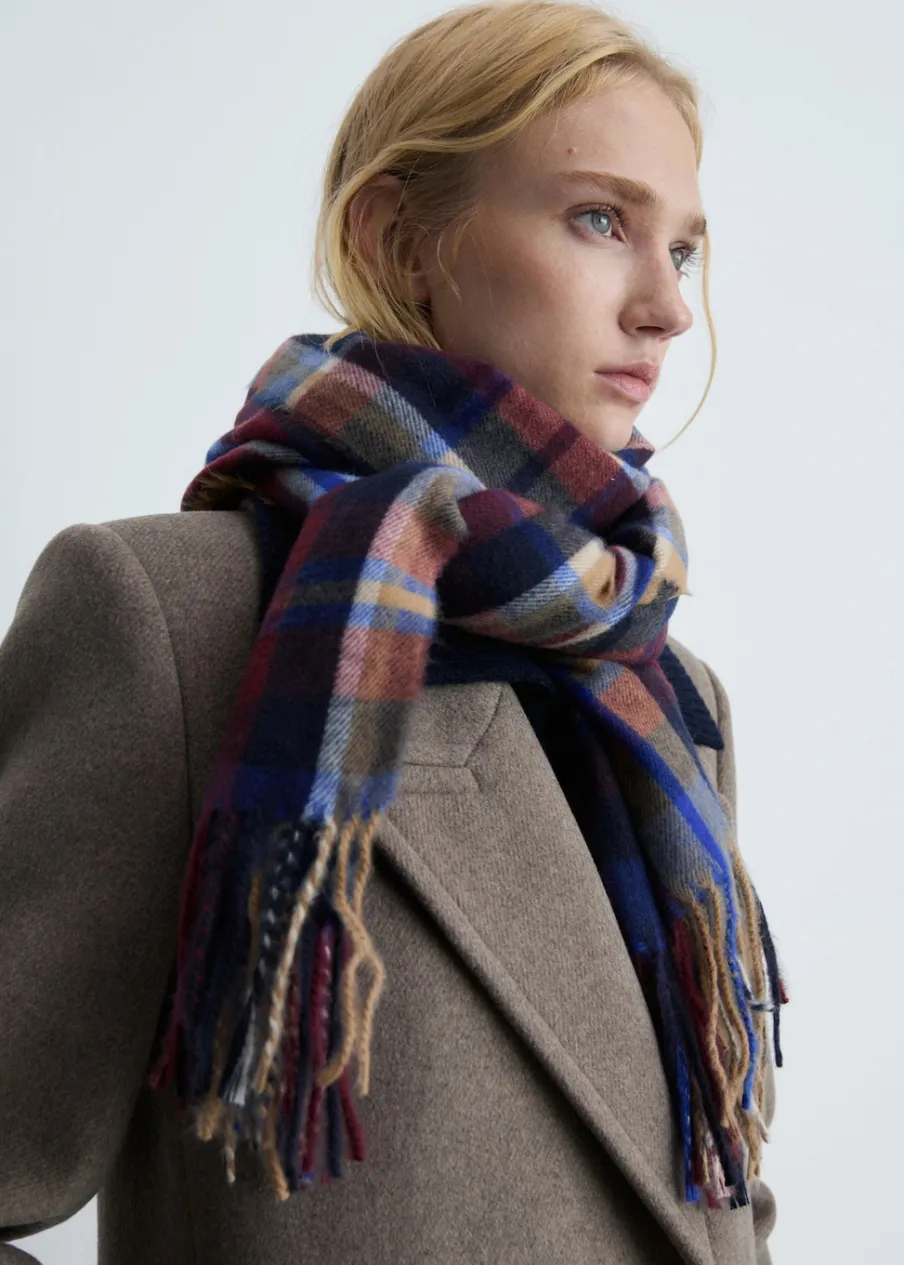 OpisDeseń w kratę. Frędzlowe wykończenie.