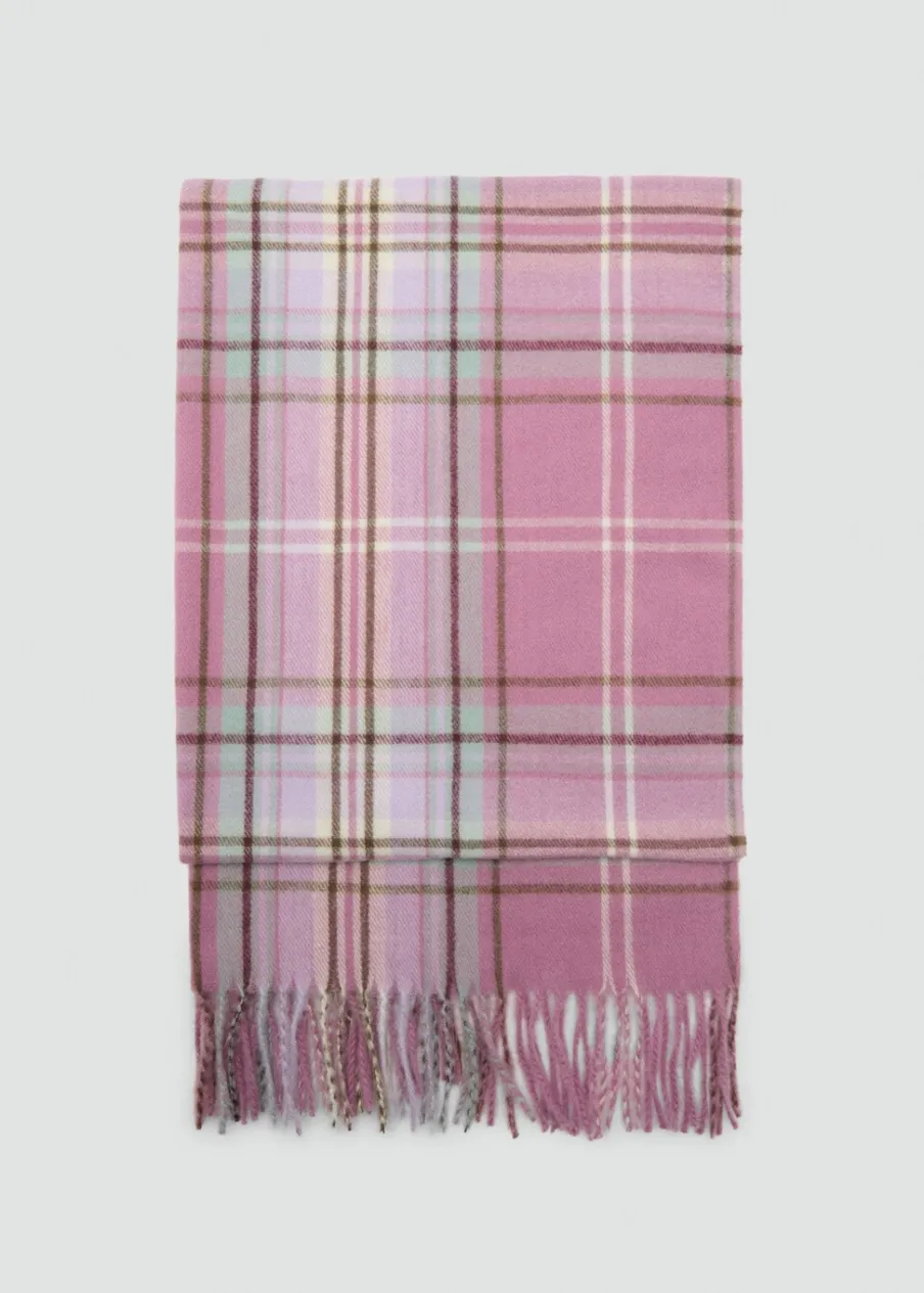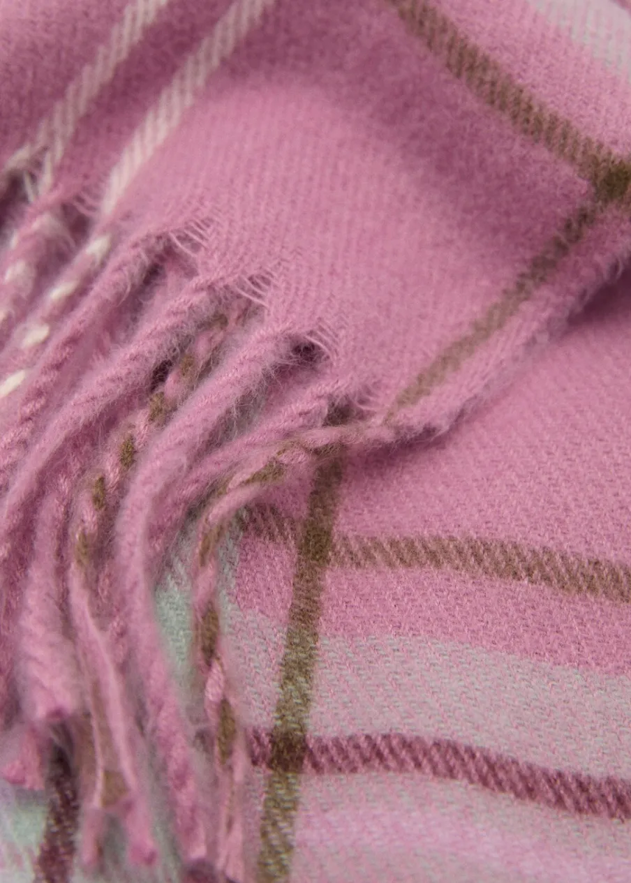 OpisDeseń w kratę. Frędzlowe wykończenie.