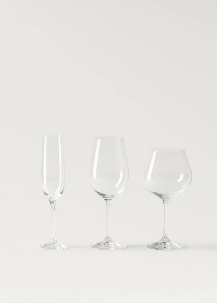 Przezroczysty. Można wypełnić płynami. Pasuje do innych artykułów z kolekcji.