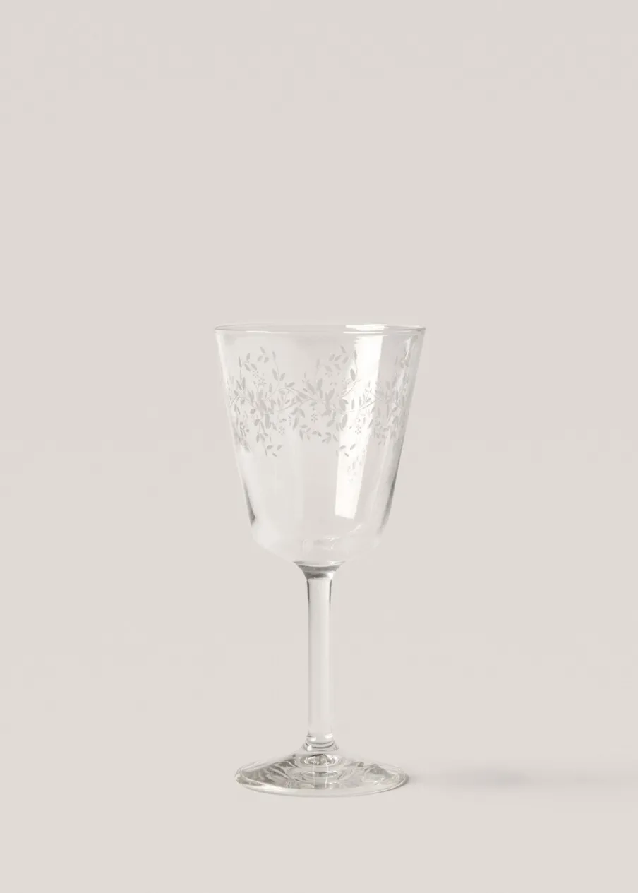 100% szkło. Białe wino. Przezroczysty. Nadruk w kwiaty. Design i wygoda w Twojej kuchni dzięki nowym artykułom z kolekcji Mango Dom.