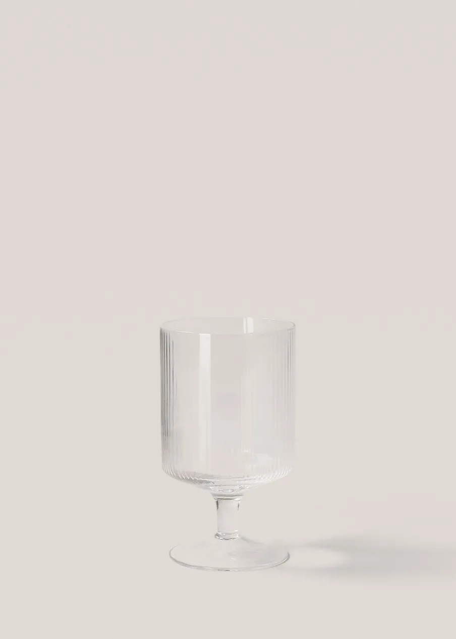 100% szkło. Półprzezroczysty design. Można wypełnić płynami. Można wypełnić wodą. Akcesoria kuchenne. Skompletuj look za pomocą innych produktów z kolekcji. Pojemność: 270 ml. Szkło z teksturą w linie.