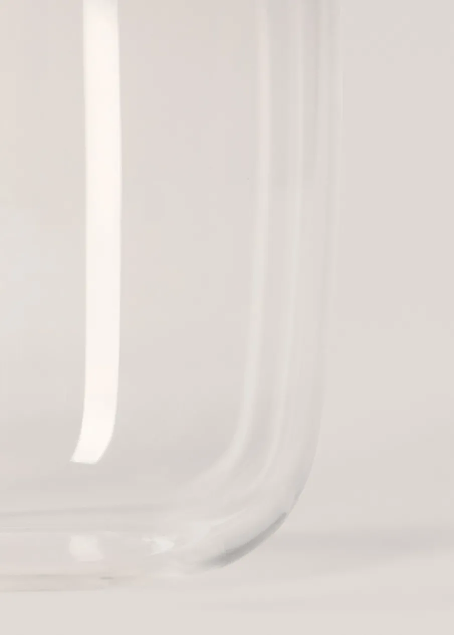 Przezroczysty. Można wypełnić płynami. Pojemność: 450 ml. 100% szkło borokrzemowe. Lekki i wytrzymały materiał. Eleganckie i minimalistyczne wzornictwo, idealne na każdy stół.