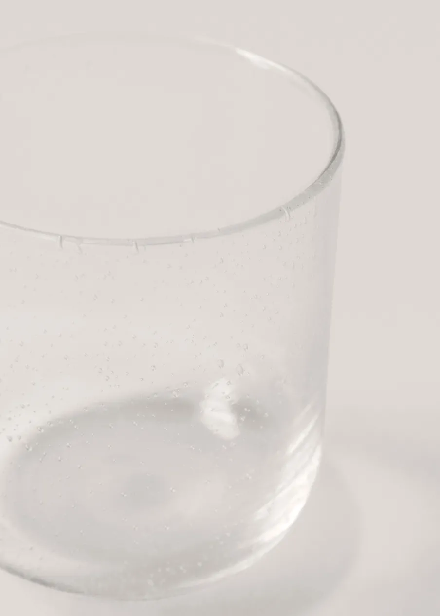 100% szkło. Średnica: 8 cm. Wysokość: 9 cm. Sprzedaż na sztuki. Wytłaczana tekstura. Można wypełnić płynami. Można wypełnić wodą. Można myć w zmywarce. Nie nadaje się do kuchenki mikrofalowej. Naczynie na żywność. Nie wpływa na smak ani zapach. Szklanki i kieliszki. Do używania na co dzień i na specjalne okazje. Akcesoria kuchenne. Akcesorium do domu. Pojemność: 300 ml.