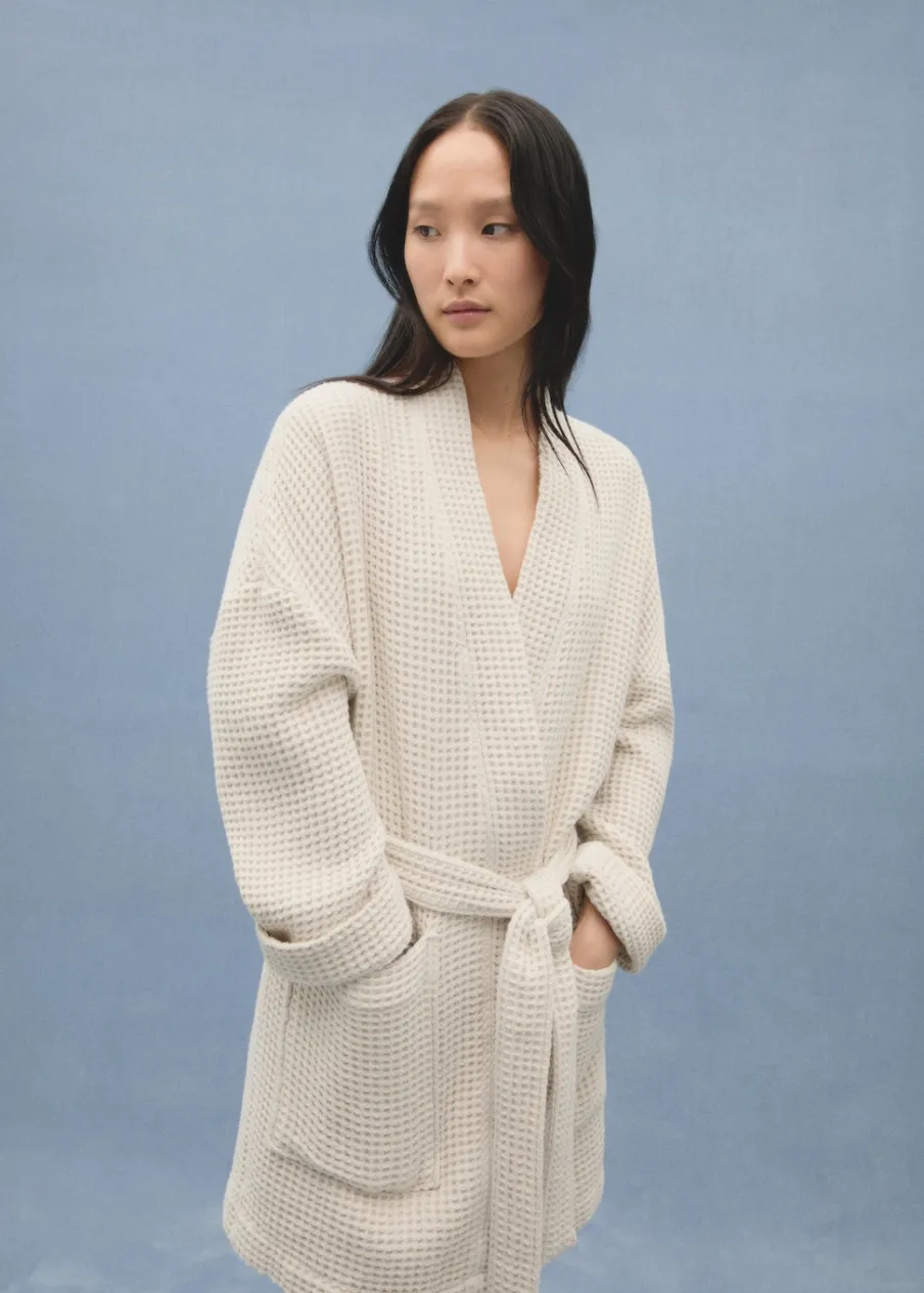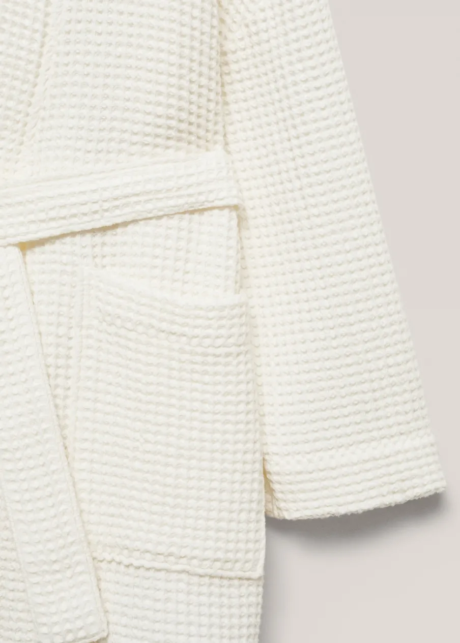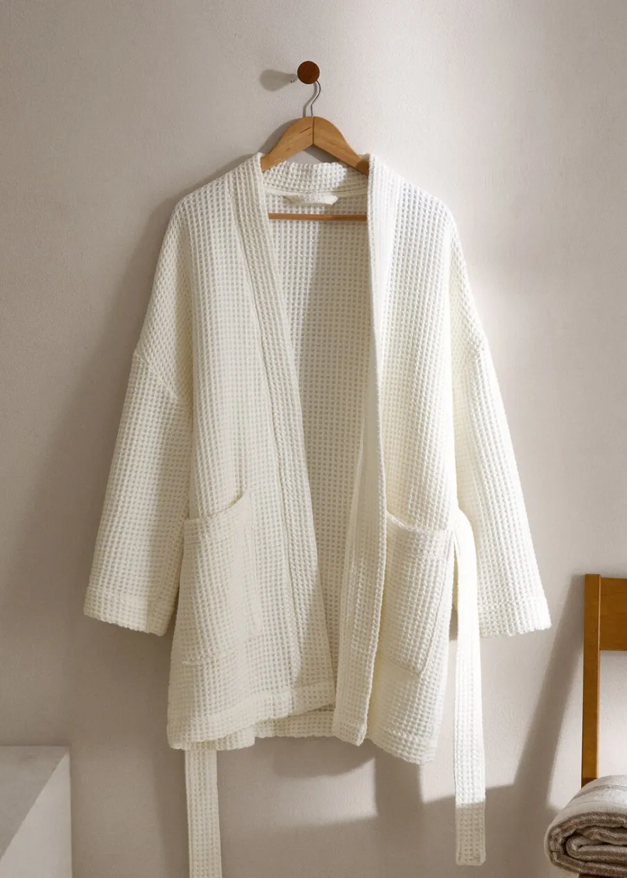 Bawełna 100%. Gofrowa tekstura. Wysoka jakość. Gramatura: 460 g/m2. Przyjemna tekstura. Dwie kieszenie nakładane z przodu. Wiązanie na wysokości biodra. Wysoce chłonny i oddychający materiał zapewnia szybkie schnięcie.
