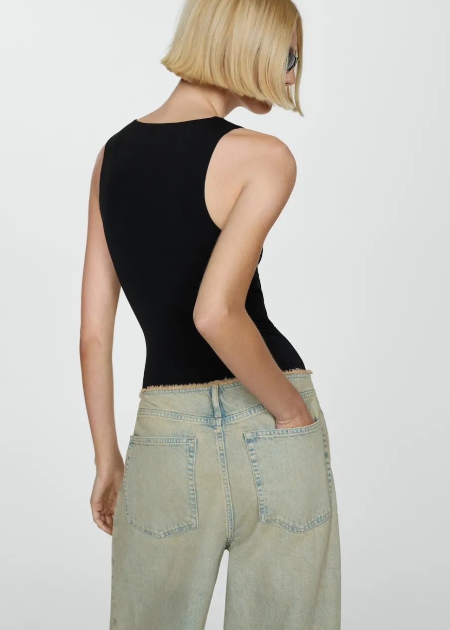 OpisFason body. Okrągły dekolt. Bez rękawów. Zapięcie na haftki. Model wcięty.