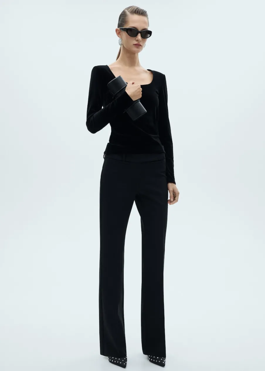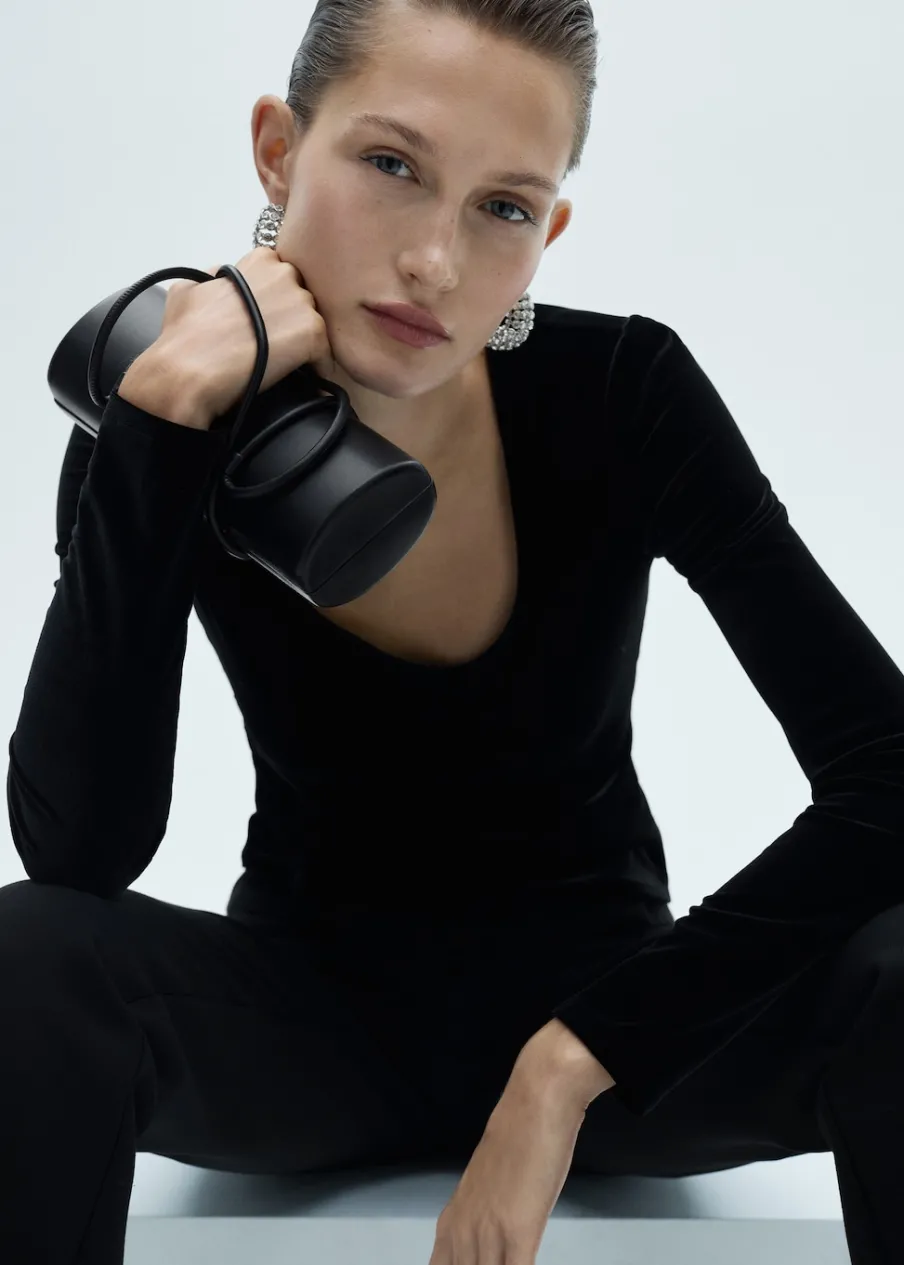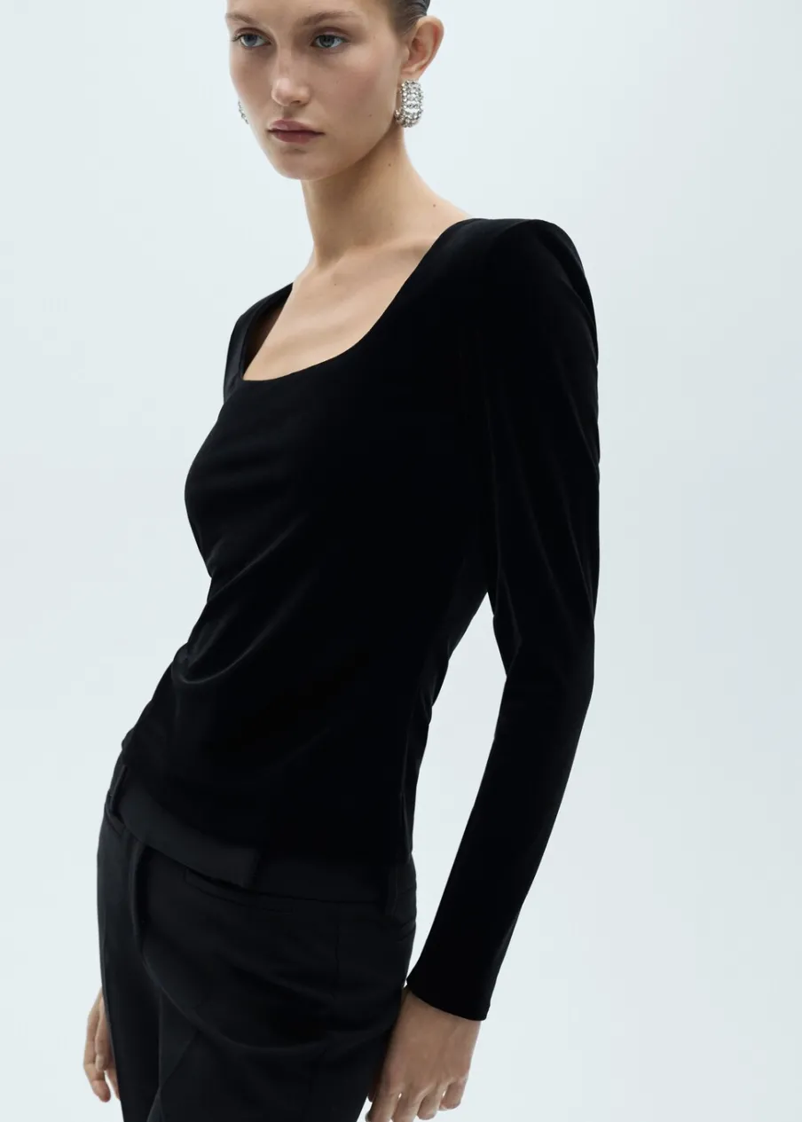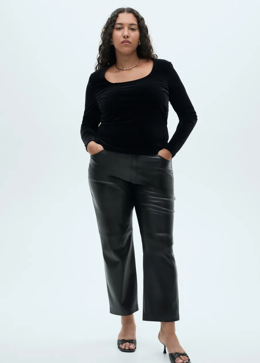 Aksamitna tkanina. Model wcięty. Okrągły dekolt. Dekolt. Długi rękaw. Bez zapięcia. Dostępne w Plus Size. Kolekcja wizytowa.