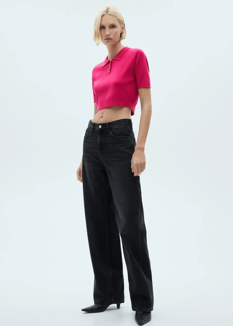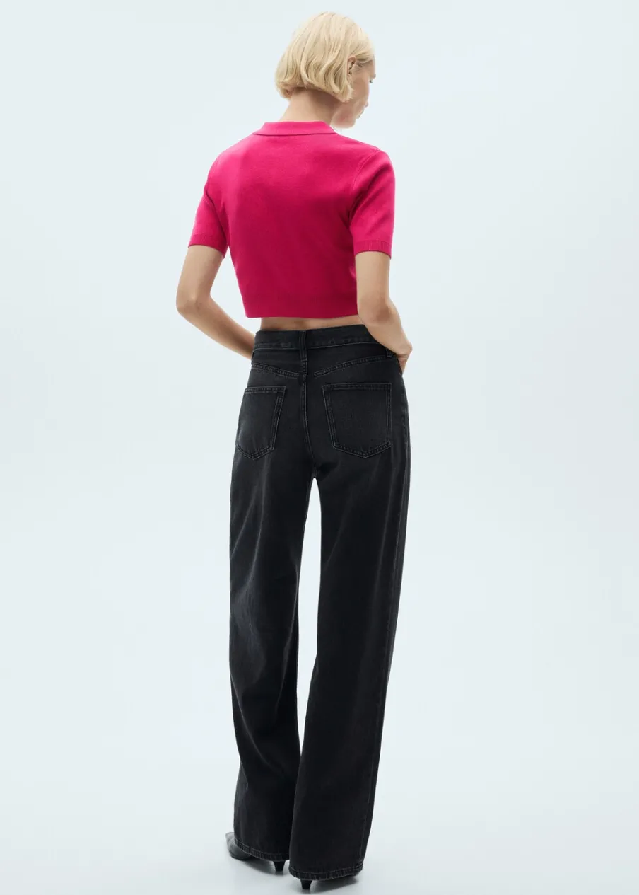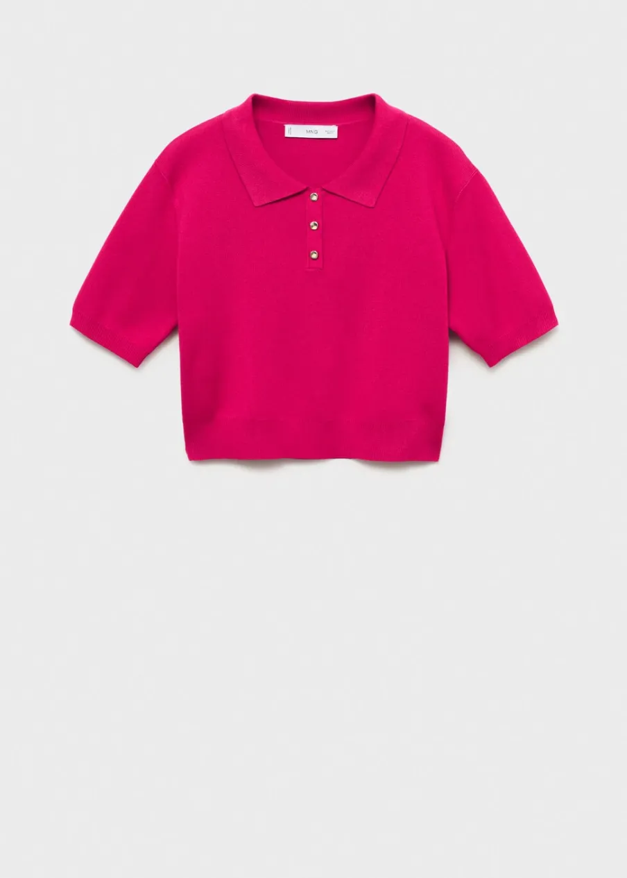 Model prosty. Deseń crop. Krótki rękaw. Zapięcie z przodu na guziki. Modelka ma 178 cm wzrostu i nosi rozmiar S/36. Modelka ma 179 cm wzrostu i nosi rozmiar S/36. Tkanina z cienkiej dzianiny. Kołnierzyk polo.