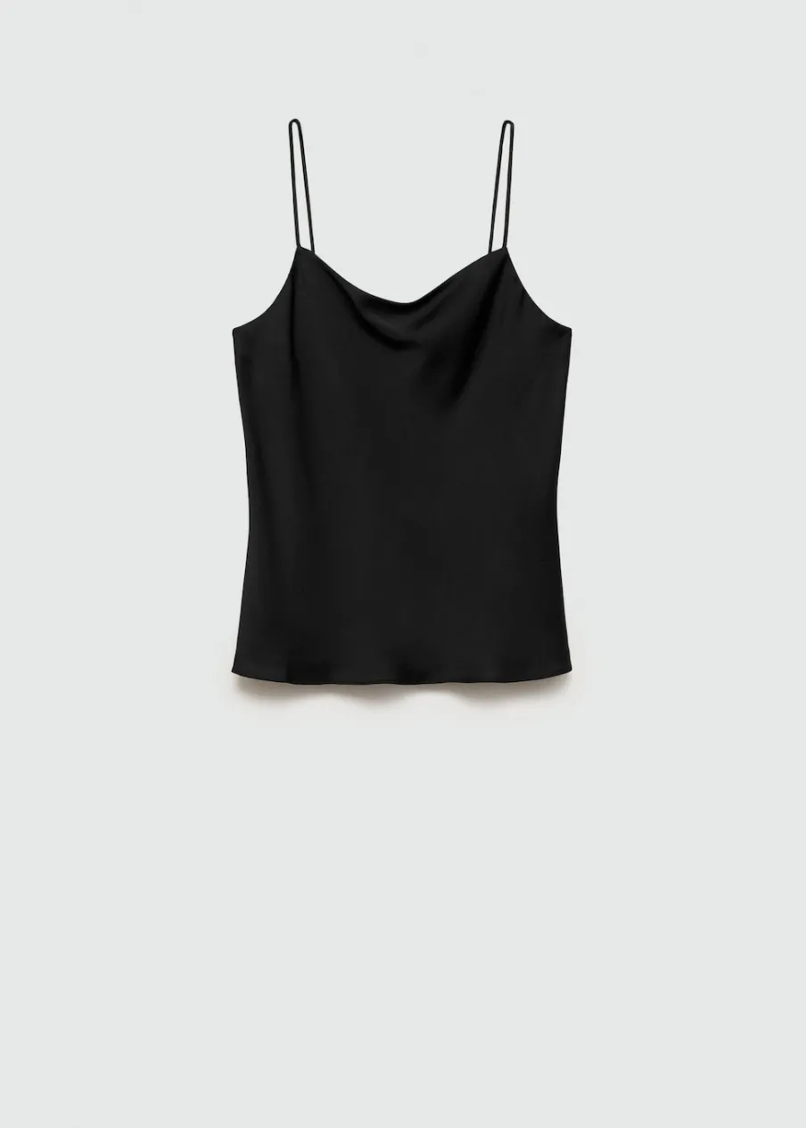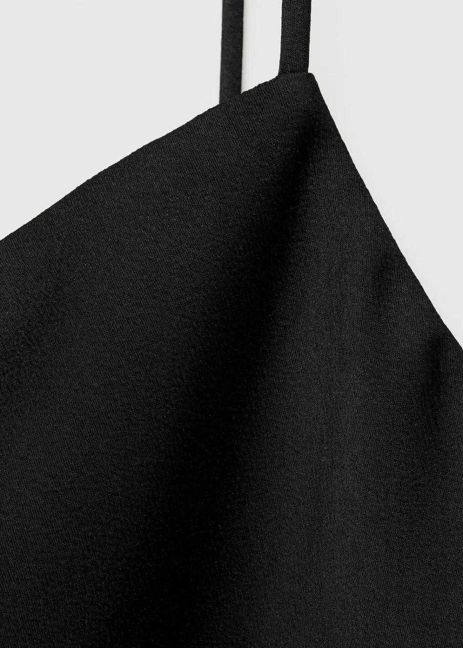 OpisDekolt. Cienkie ramiączka. Model prosty. Bez zapięcia. Modelka ma 178 cm wzrostu i nosi rozmiar S/36. Satynowa tka…
