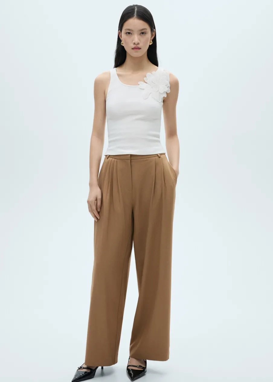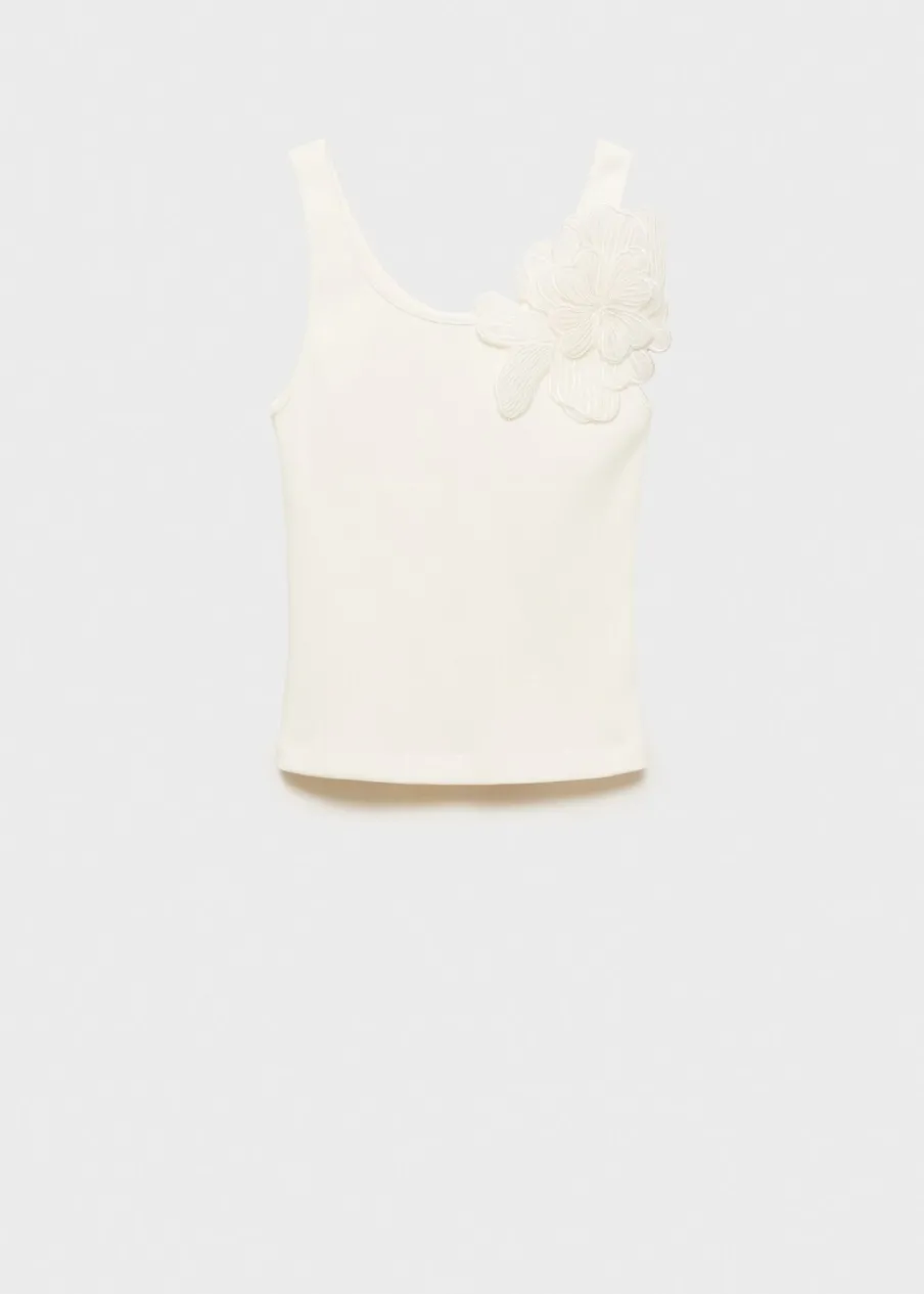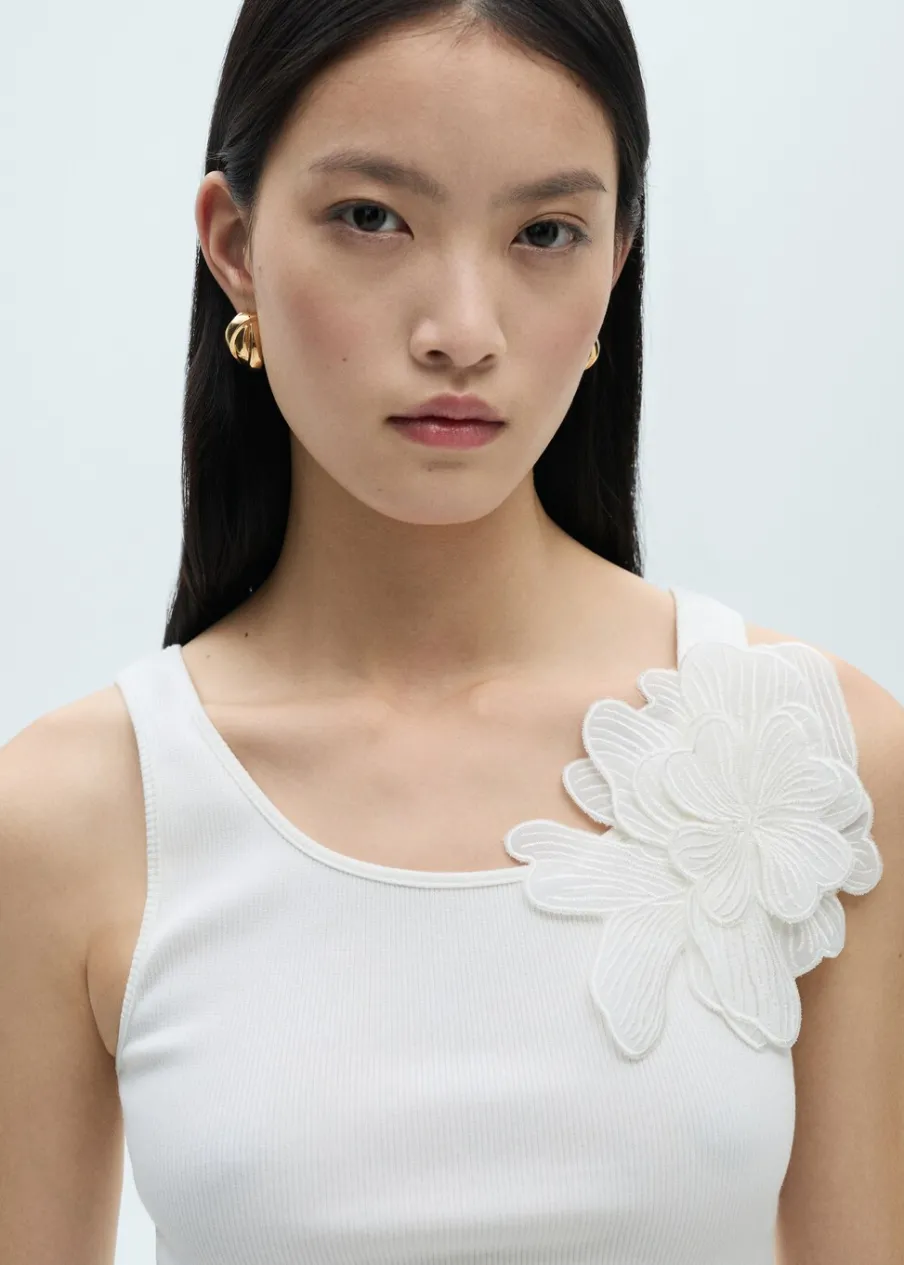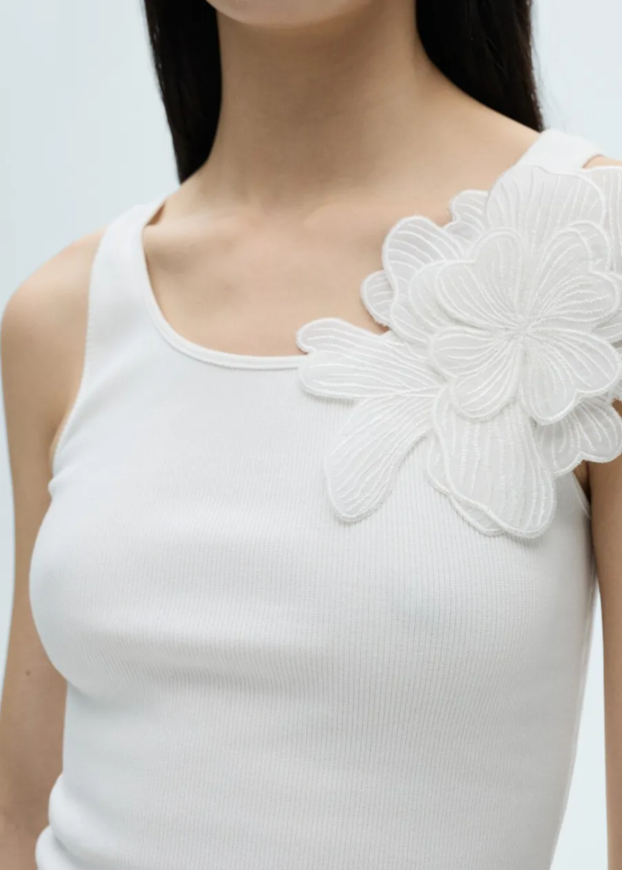 Model prosty. Model standardowy. Slim-fit. Dekolt. Szerokie ramiączka. Bez zapięcia. Ozdobny kwiat.