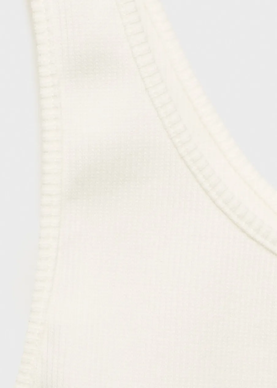 OpisModel prosty. Model standardowy. Slim-fit. Dekolt. Szerokie ramiączka. Bez zapięcia. Ozdobny kwiat.