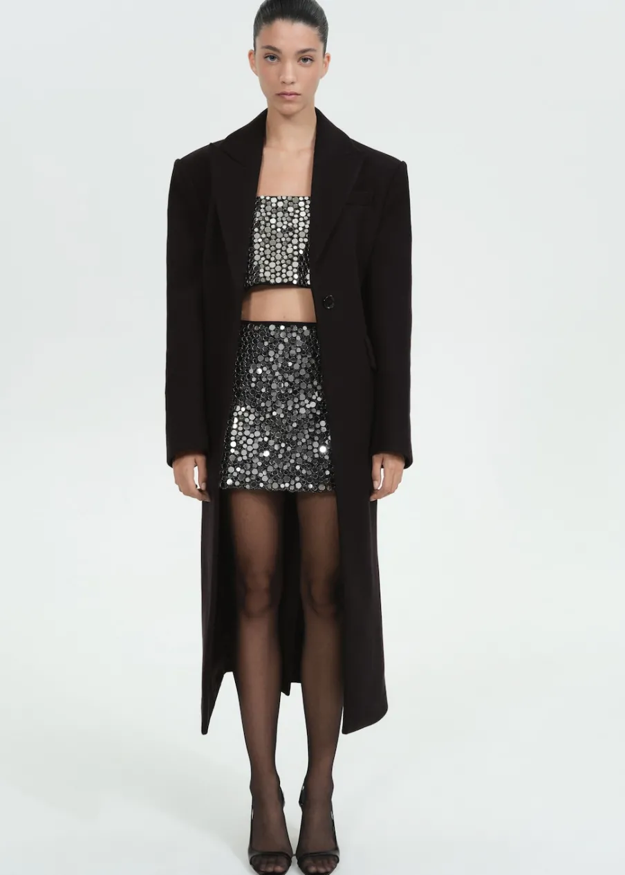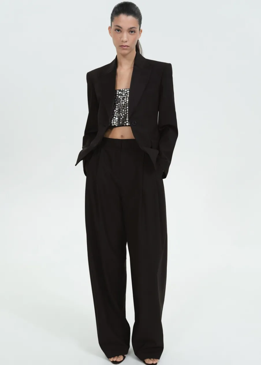 Gama eleganckich ubrań uszytych z wysokiej jakości tkanin, tworzących kobiecą i współczesną garderobę na specjalne okazje.