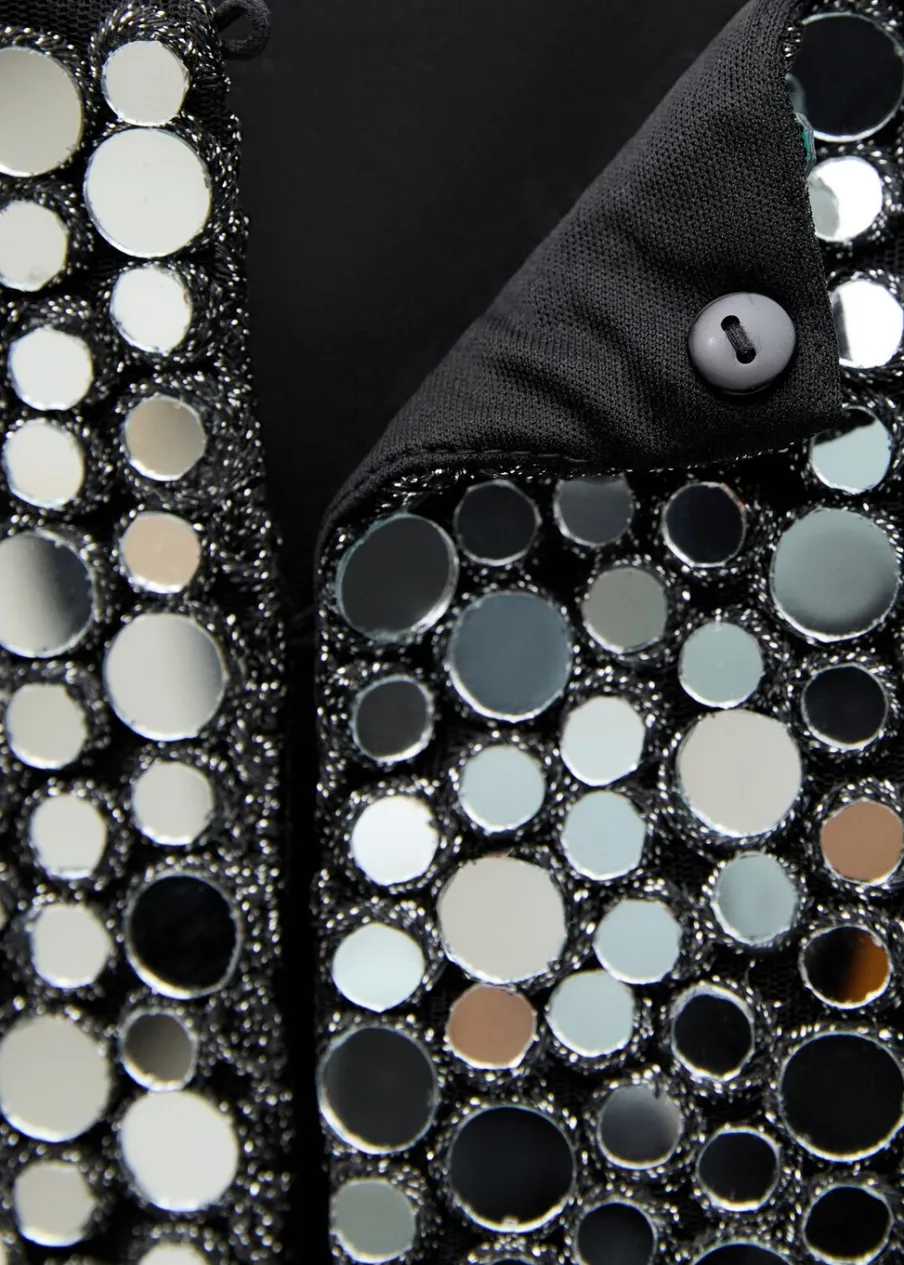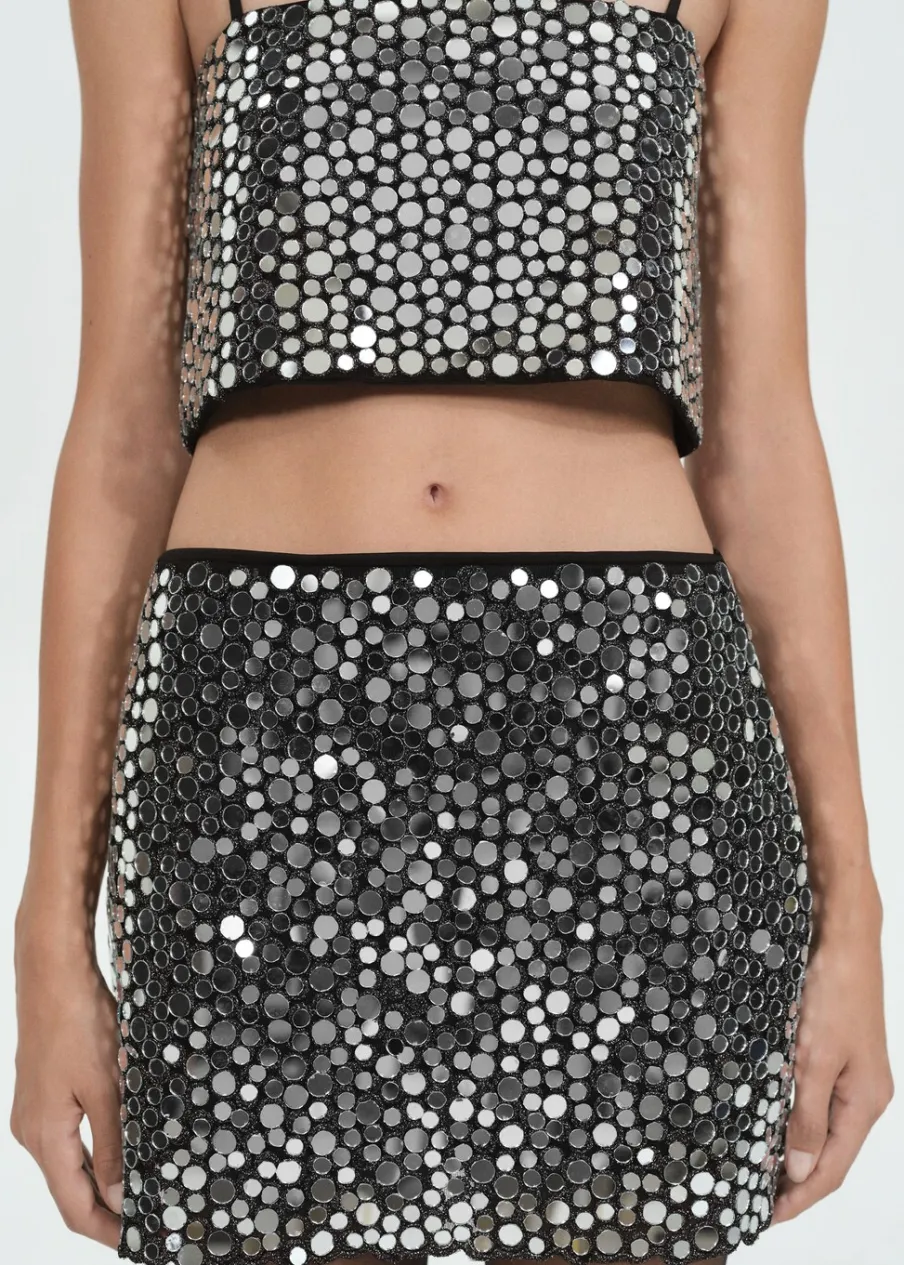 Deseń crop. Model prosty. Kwadratowy dekolt. Bez rękawów. Cienkie, regulowane ramiączka. Zapięcie na haftkę z tyłu. Aplikacja z kryształków. Modelka ma 177 cm wzrostu i nosi rozmiar S/36. Kolekcja wizytowa. Kolekcja Selection. Total look.