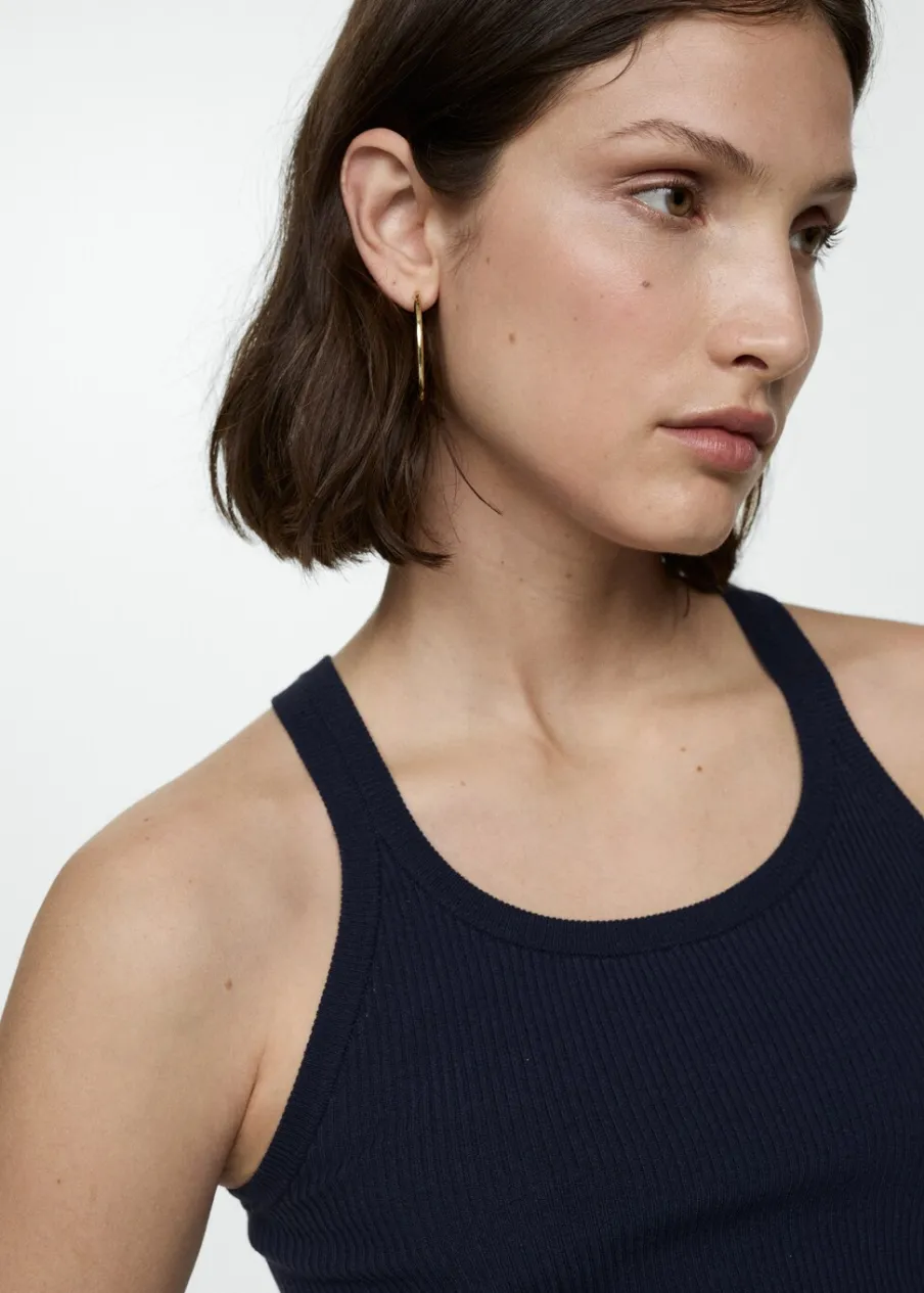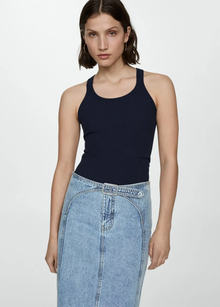 Tkanina z cienkiej dzianiny. Okrągły dekolt. Okrągły dekolt. Cienkie ramiączka. Model wcięty.