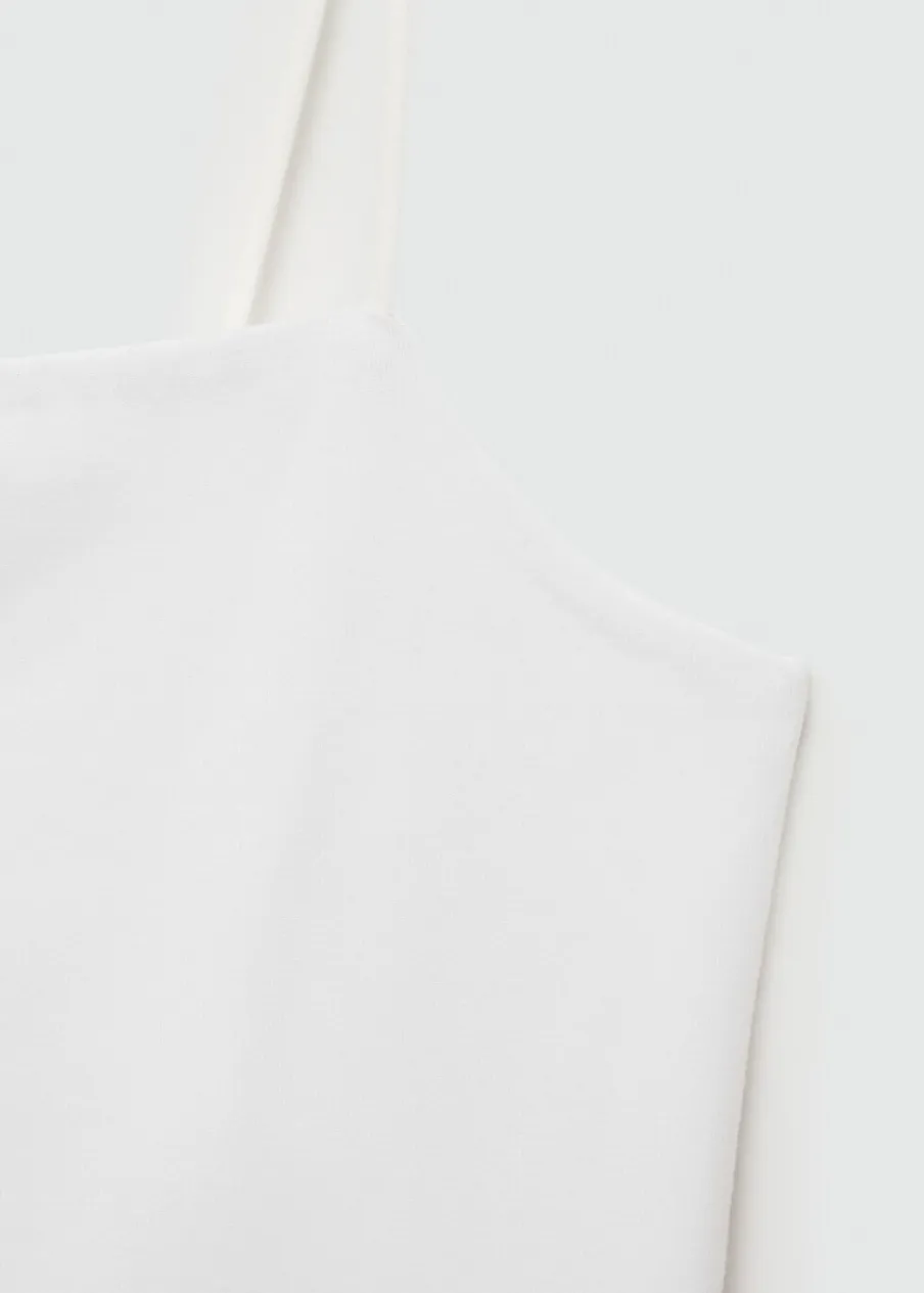 Model prosty. Prosty dekolt. Bez rękawów. Cienkie ramiączka. Bez zapięcia. Model wcięty. Tkanina z 100% bawełny.