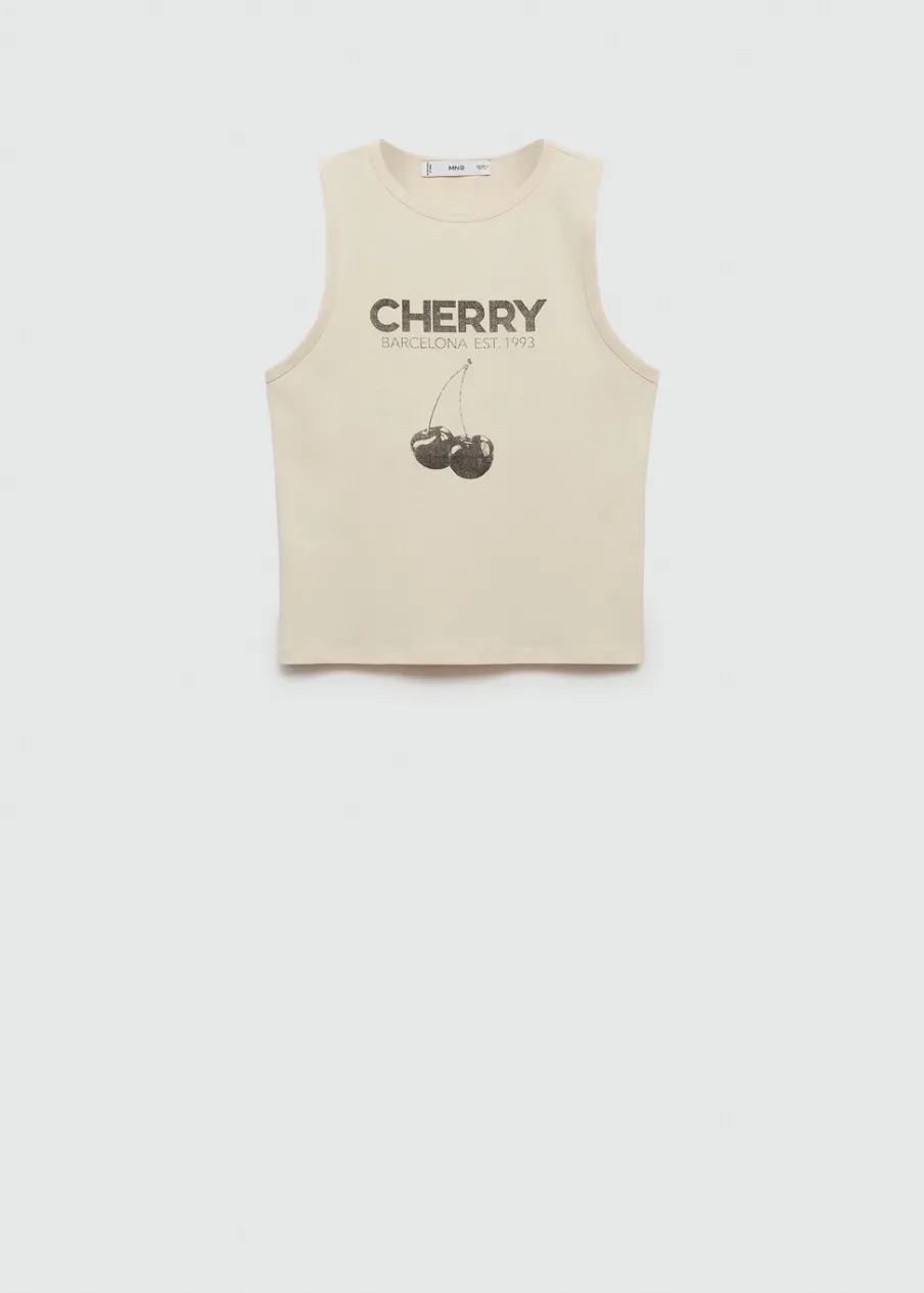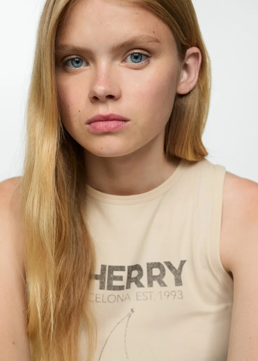 OpisTkanina mieszanka bawełny. Okrągły dekolt. Szerokie ramiączka. Bez rękawów. Model wcięty. Nadruk.