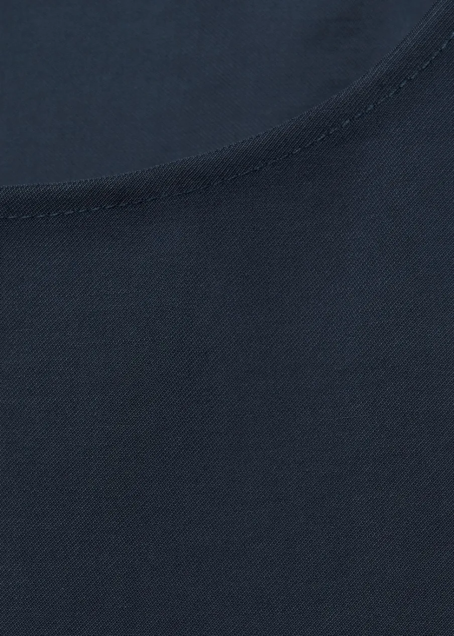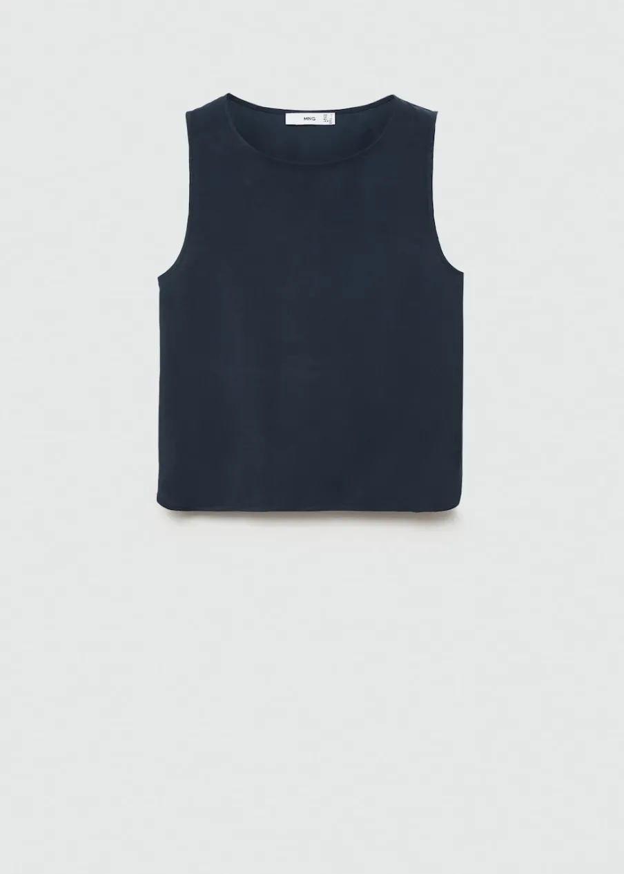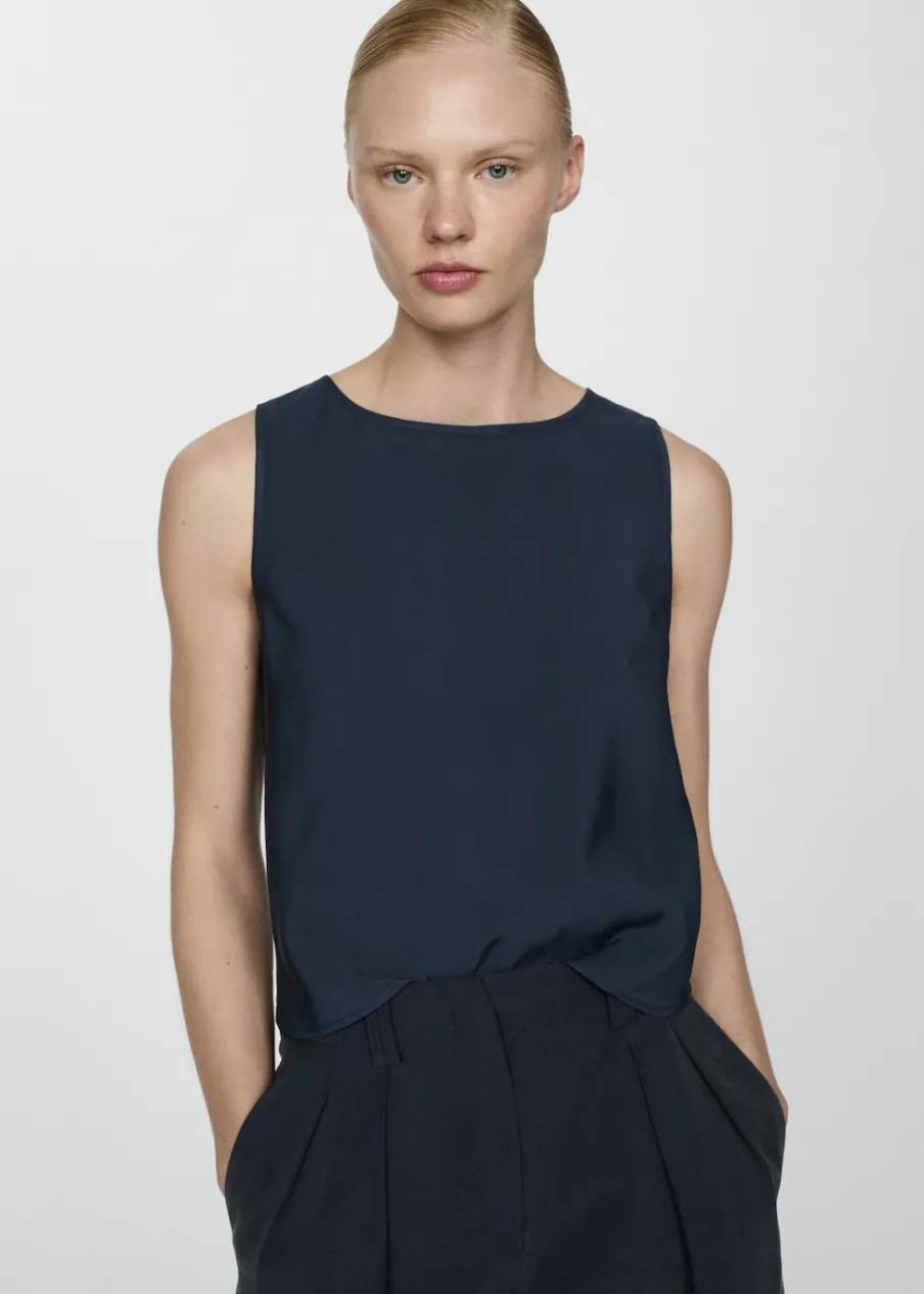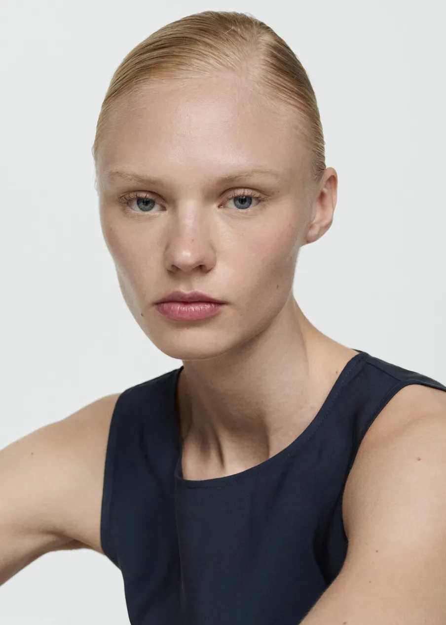 OpisLejąca tkanina. Model prosty. Okrągły dekolt. Bez rękawów. Szerokie ramiączka. Dół z rozcięciem po bokach. …