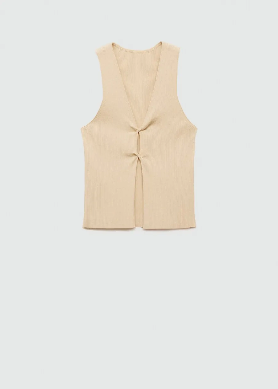 OpisTkanina z cienkiej dzianiny. Model prosty. Dekolt V. Bez rękawów. Szerokie ramiączka. Kopertowy element. Detal z …