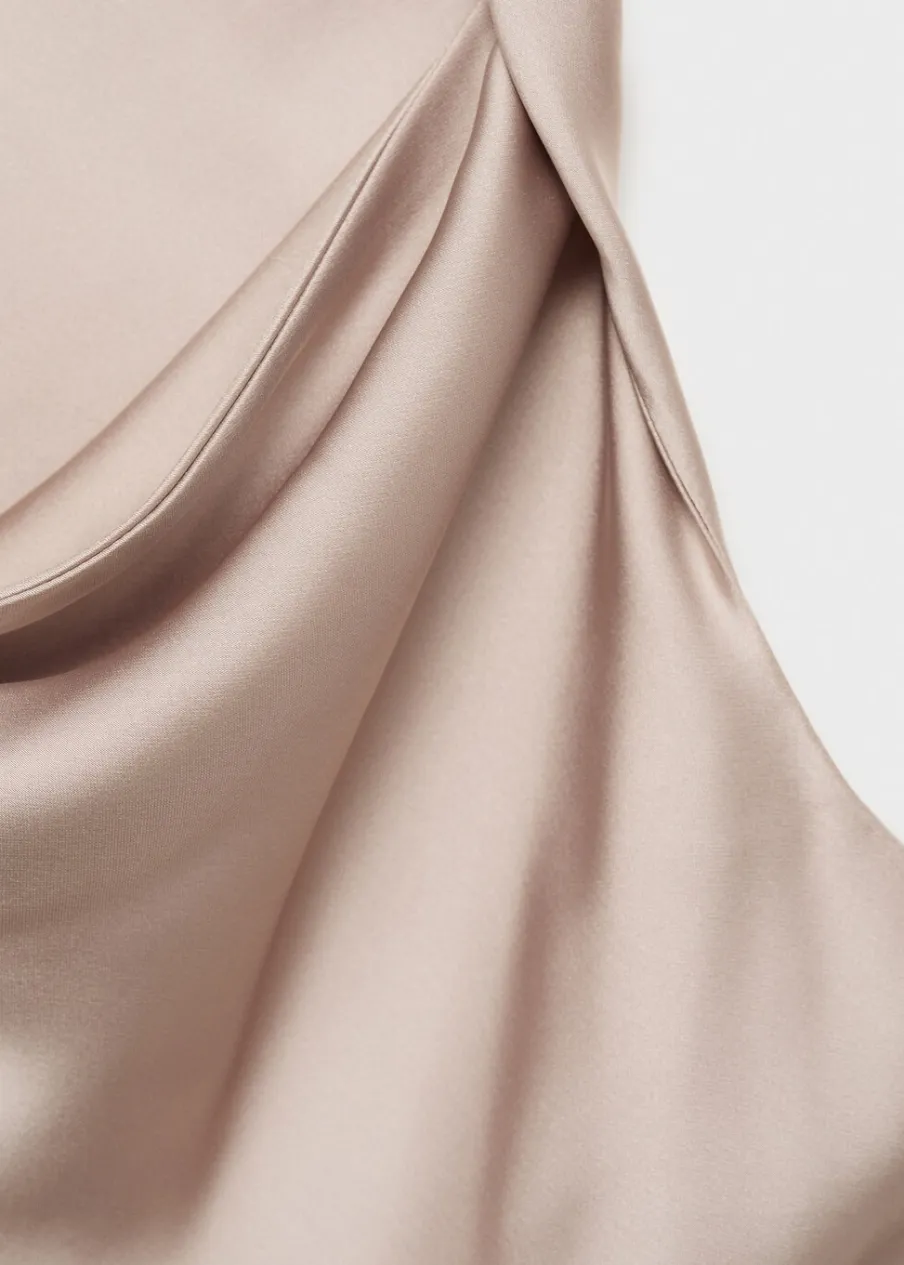 OpisSatynowa tkanina. Model prosty. Drapowany dekolt. Szerokie ramiączka. Bez rękawów. Bez zapięcia. Kolekcja wizyto…