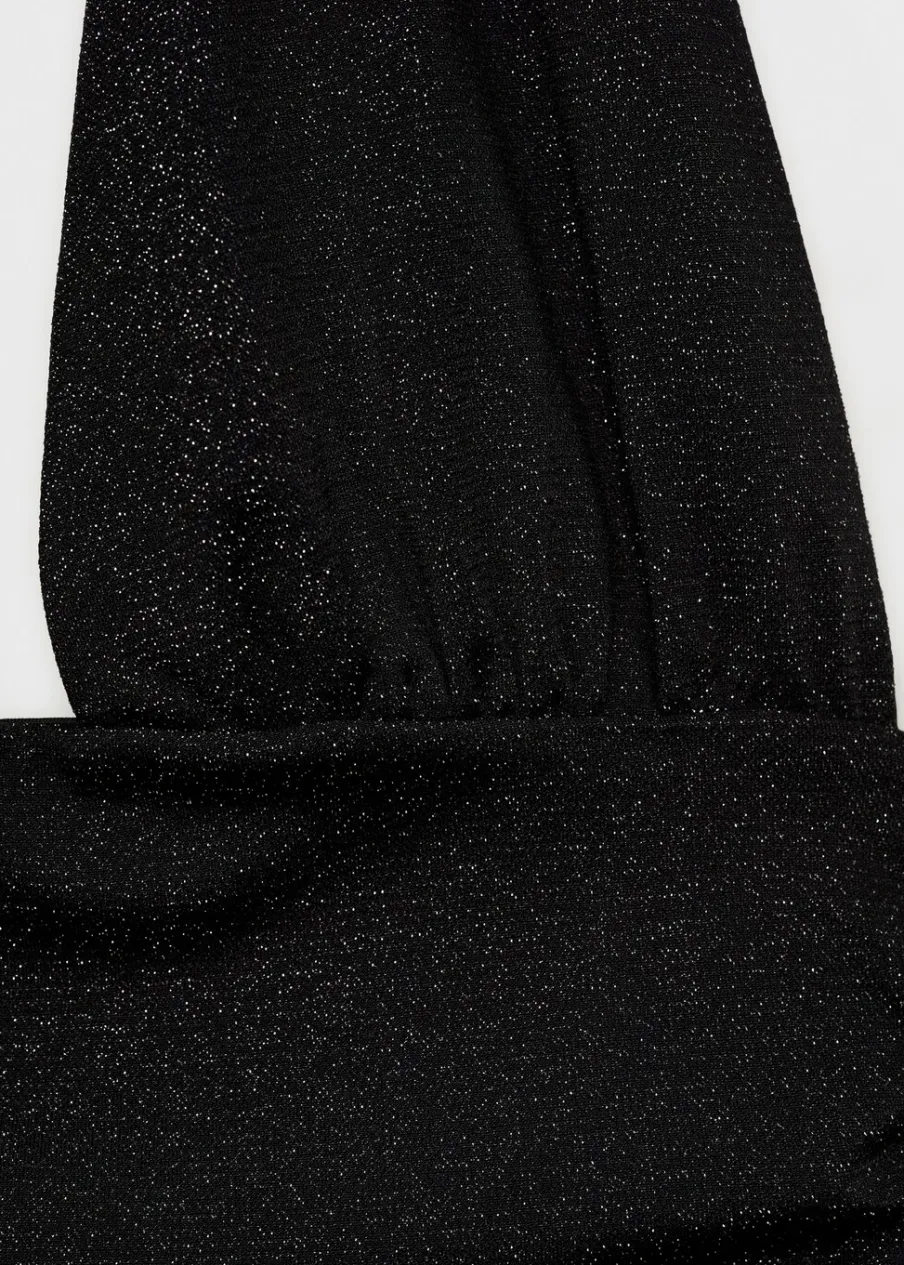Dzianinowa tkanina. Tkanina lureks. Model wcięty. Deseń crop. Dekolt w stylu halter. Szerokie ramiączka. Bez rękawów. Drapowany detal. Kolekcja wizytowa.