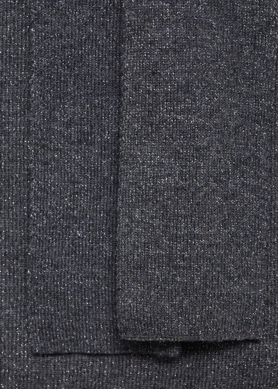 OpisTkanina z cienkiej dzianiny. Tkanina lureks. Model wcięty. Dekolt bez ramiączek. Bez rękawów. Szarfa pod szyją….