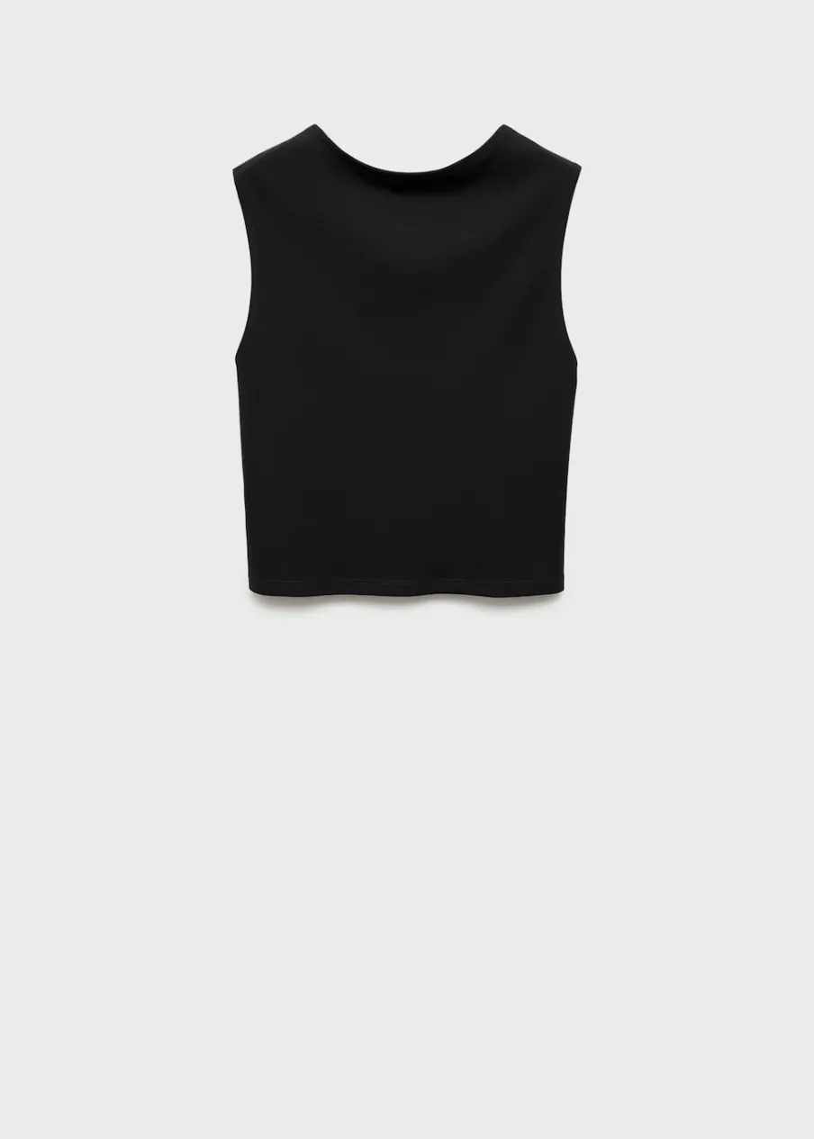 OpisModel wcięty. Deseń crop. Okrągły dekolt. Szerokie ramiączka. Bez rękawów. Plecy z wycięciem. Bez zapięcia….