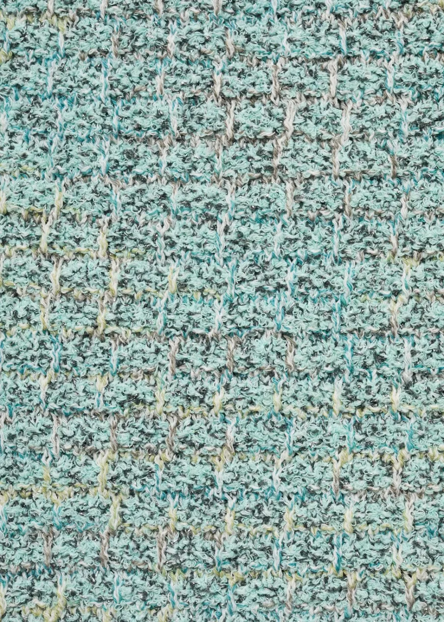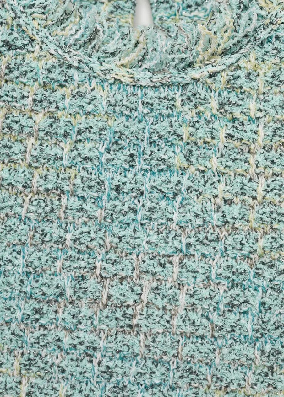 Tkanina mieszanka bawełny. Tkanina tweedowa. Model prosty. Okrągły dekolt. Bez rękawów. Zapięcie na guzik z tyłu. Postrzępione wykończenia.
