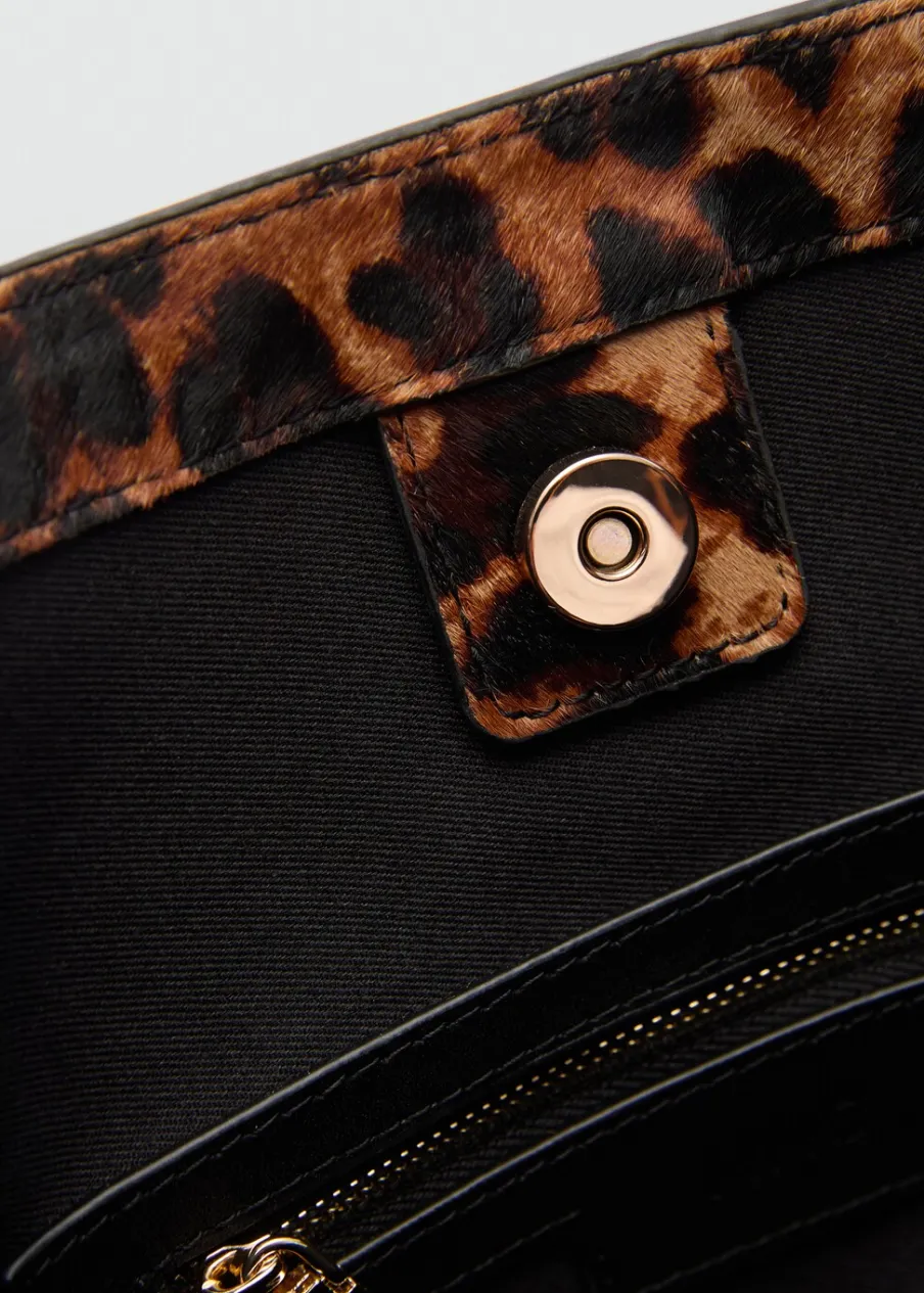 100% skóra bydlęca. Średnia wielkość. W stylu shopper. Pasek na ramię. Wzór w lamparcie cętki. Zwierzęcy wzór. Wewnętrzna kieszeń. Zapięcie na suwak. Ukryte zapięcie na magnes. Wewnętrzna podszewka.