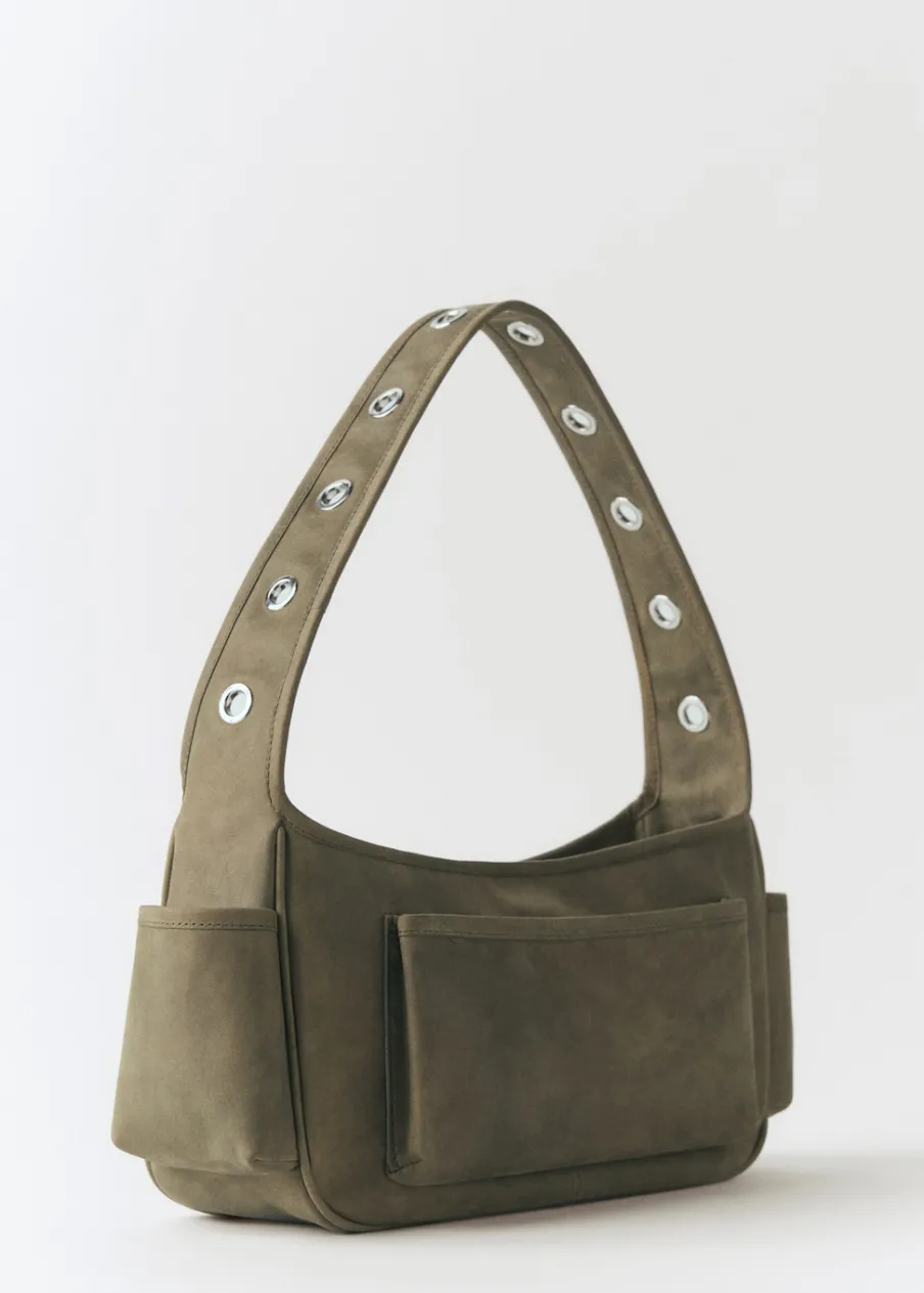 100% skóra bydlęca. Średnia wielkość. Pasek na ramię. Kieszenie boczne. Ozdobne ćwieki. Metalowe zapięcie na magnes.