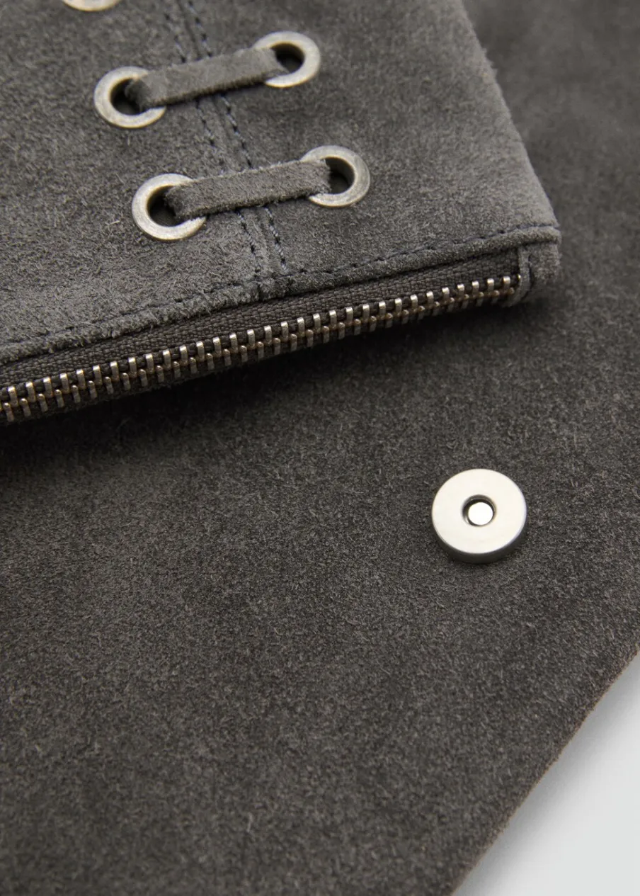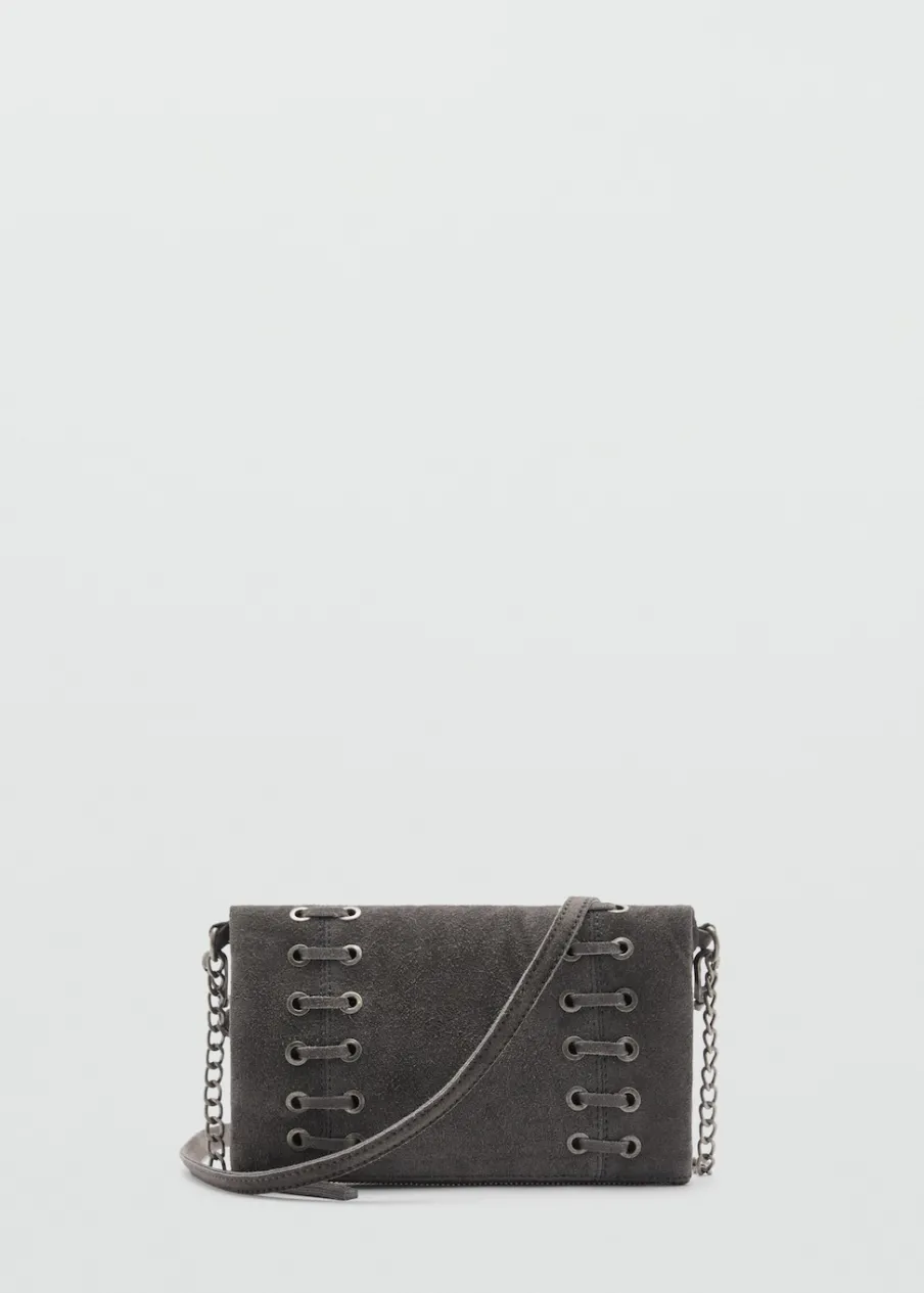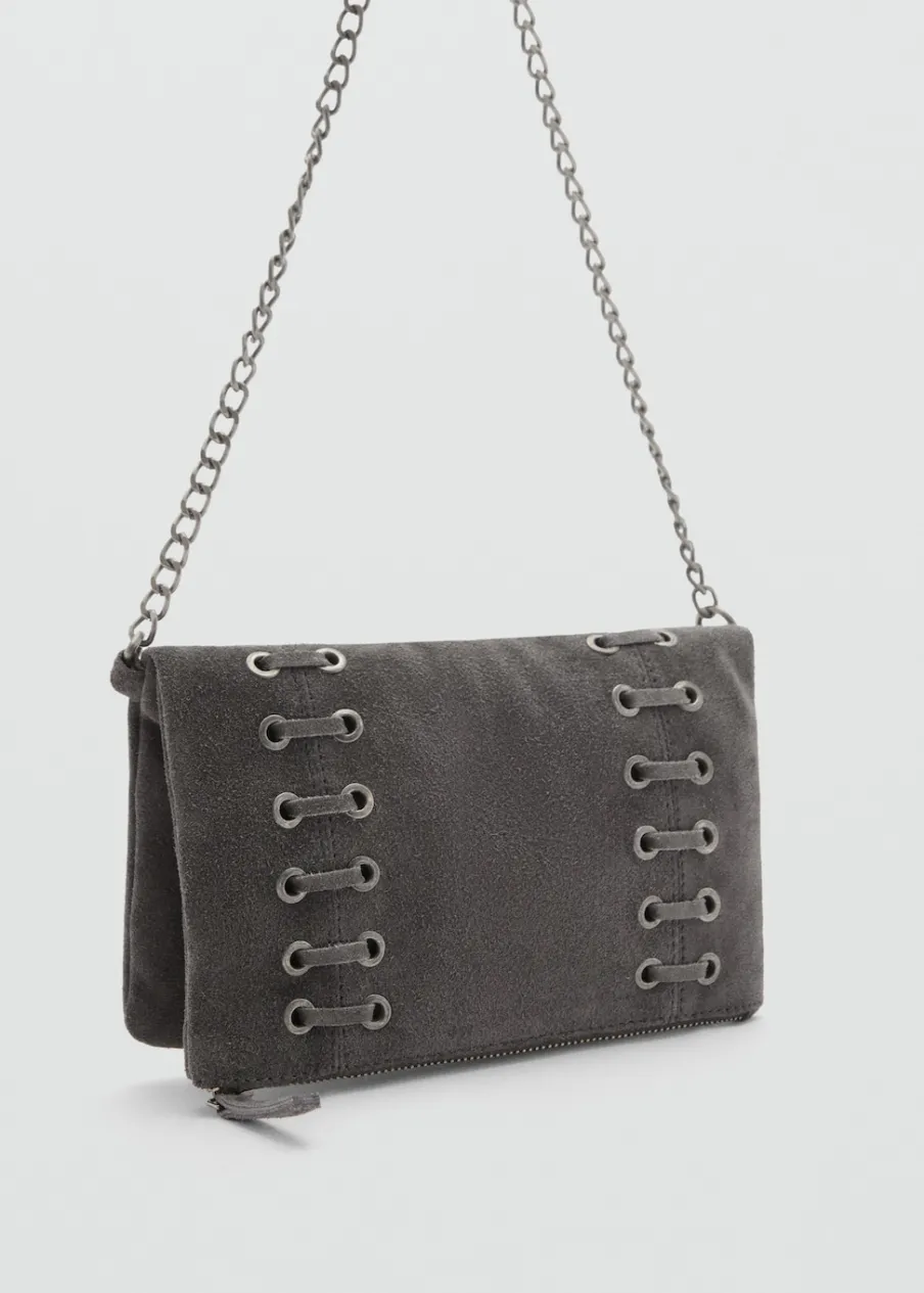 Opis100% skóra zamszowa. Łańcuchowy uchwyt. Zapięcie na suwak. Metalowe zapięcie na magnes. Model ze sznurka.
