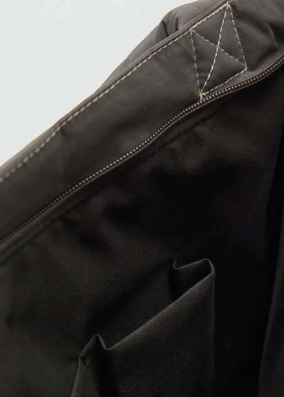 Tkanina nylonowa. Model pikowany. Dwa uchwyty. Kieszeń z patką z przodu. Zapięcie na suwak. Zdjęcie modelki wygenerowano za pomocą sztucznej inteligencji.