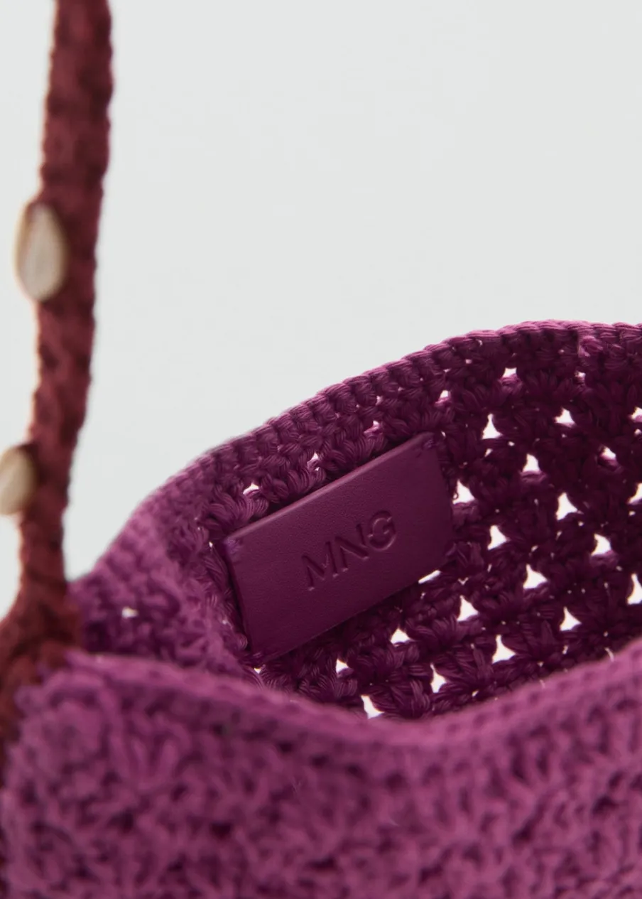 Szydełkowy model. Rozmiar mini. Krótki uchwyt. Ozdoba z muszli. Bez zapięcia.
