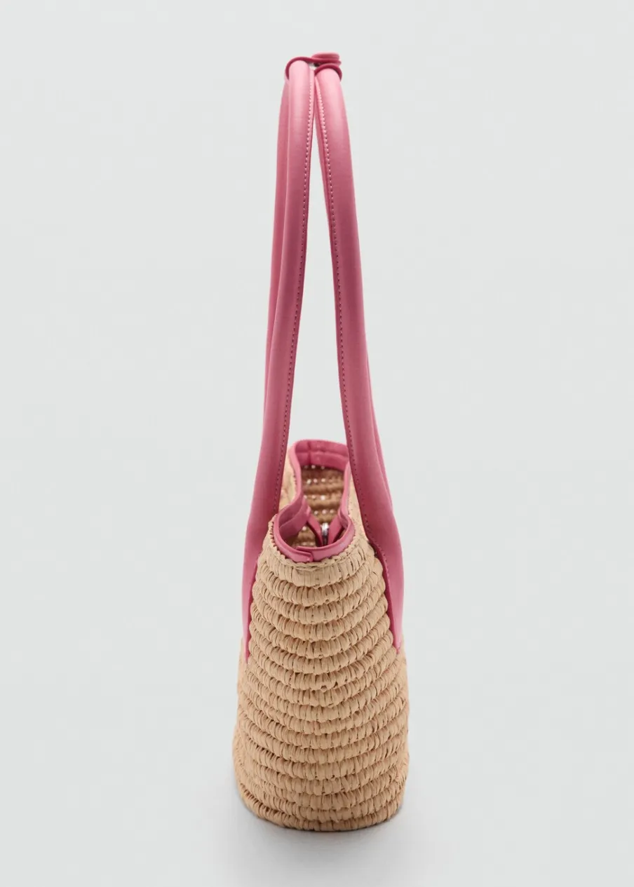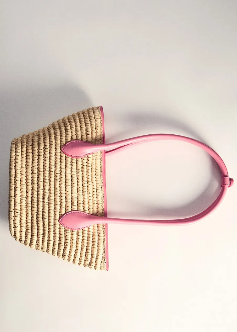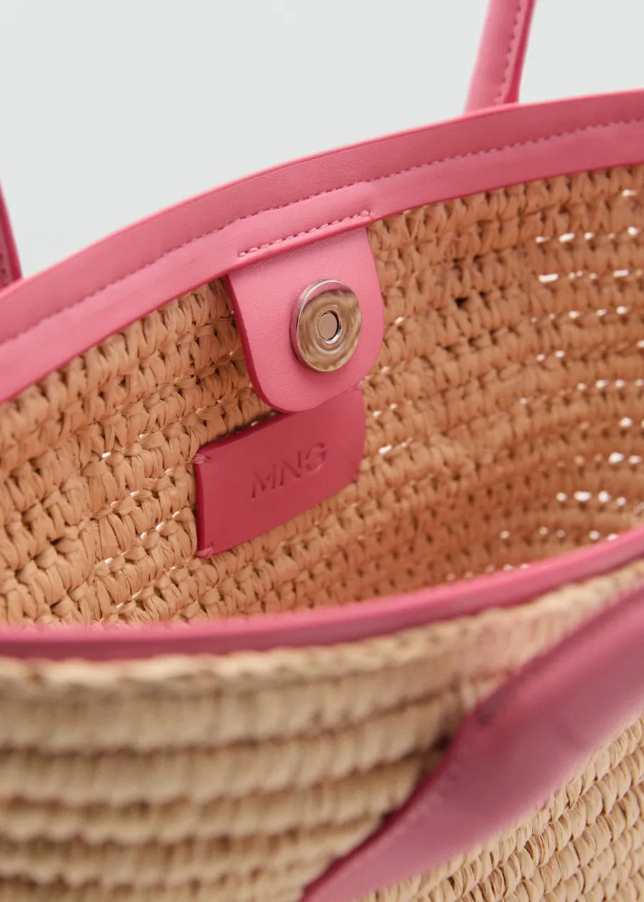 Mała wielkość. Tkanina z naturalnego włókna. Podwójny, krótki uchwyt. Ukryte zapięcie na magnes. Kontrastowy detal.