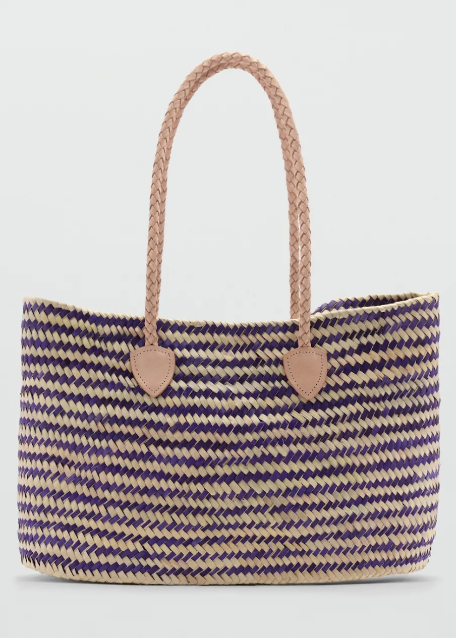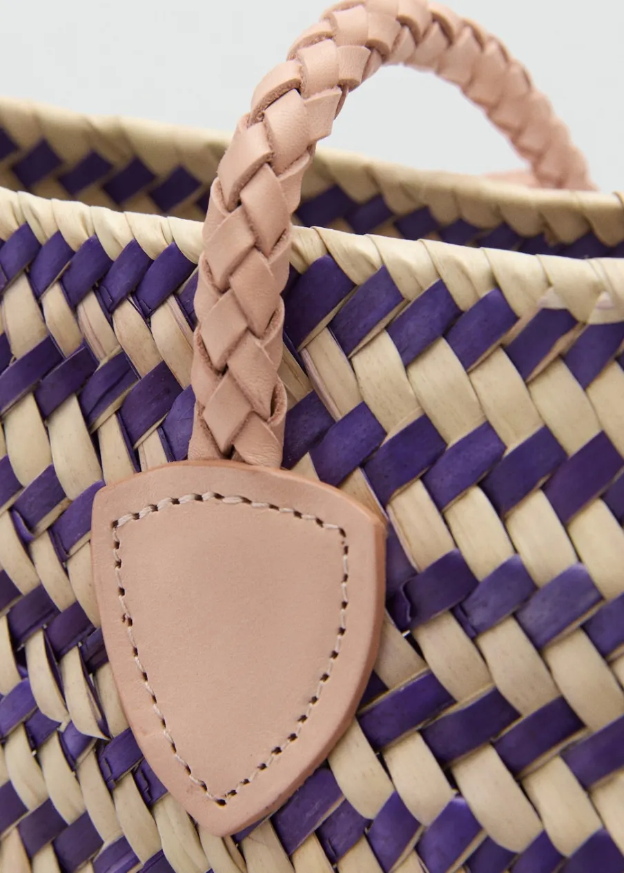 Plecione liście palmy kokosowej. Model pleciony. Model łączony. W stylu shopper. Podwójny, krótki uchwyt. Pasek na ramię. Wiązane zapięcie. Wyłącznie online. Skóra bydlęca.