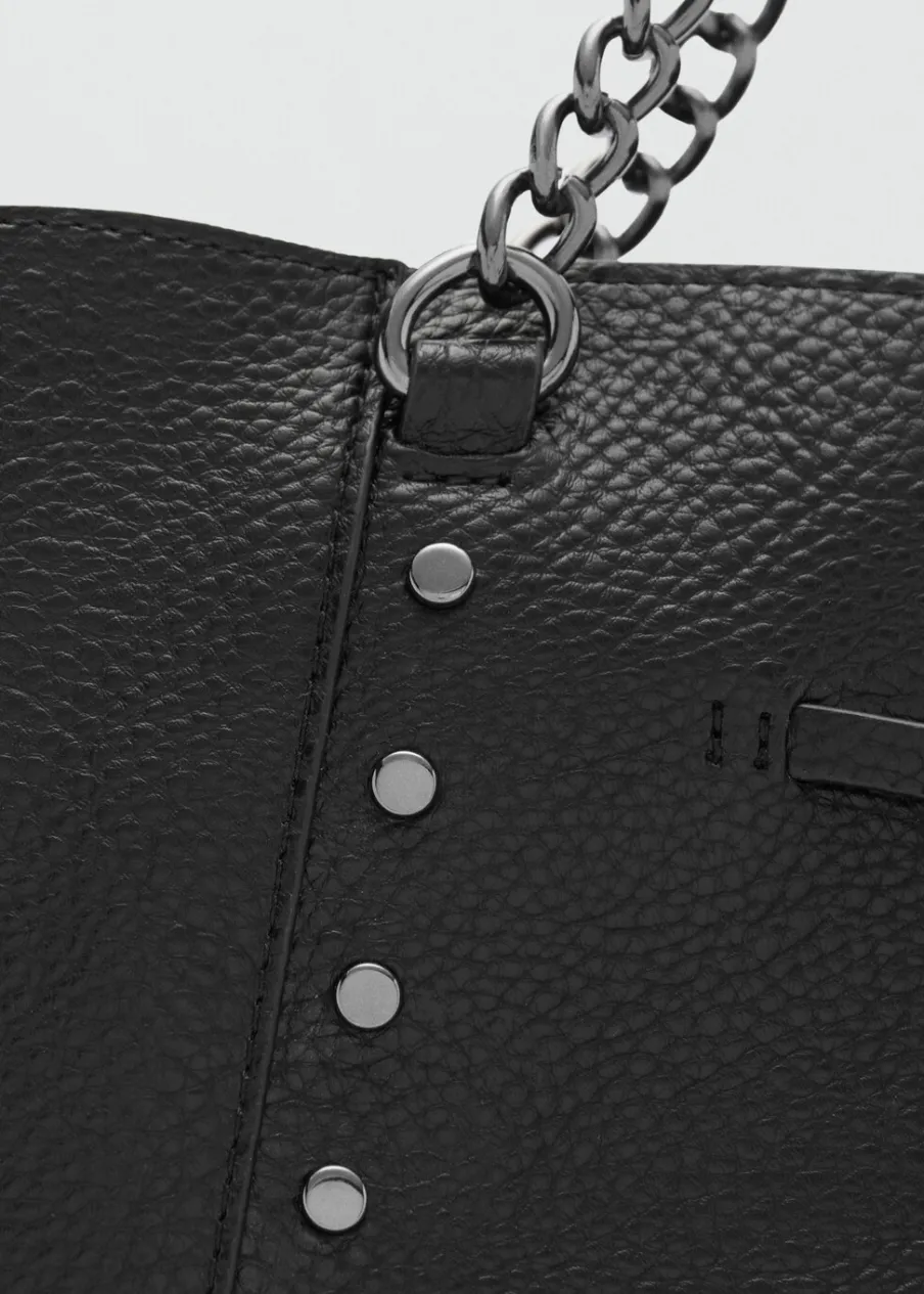OpisW stylu shopper. Duża wielkość. Ramiączka z łańcuszków. Detal z ćwiekami. Zapięcie ze sznurkiem do regulacj…