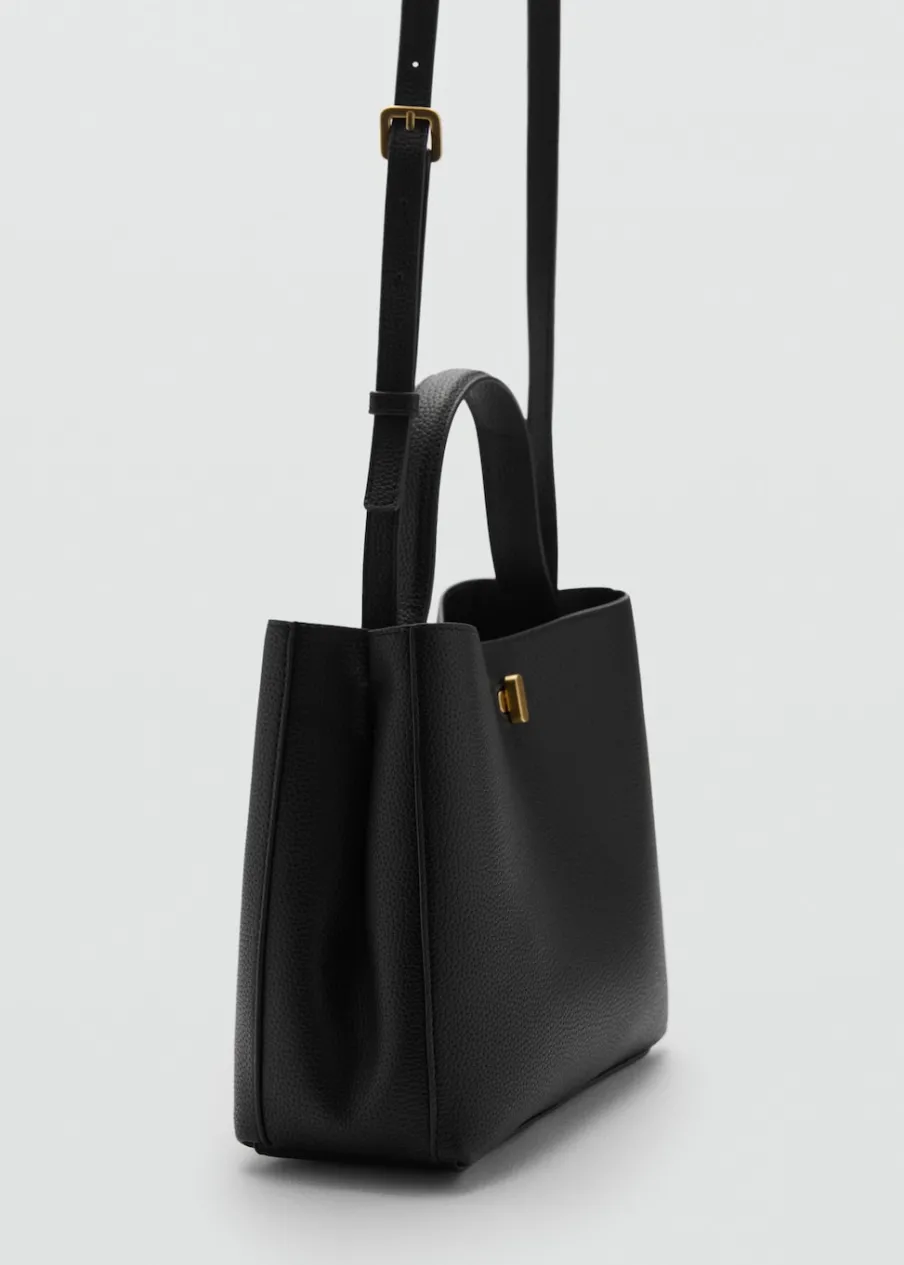 Efekt skóry. Metalowe zapięcie. Podwójny uchwyt.
