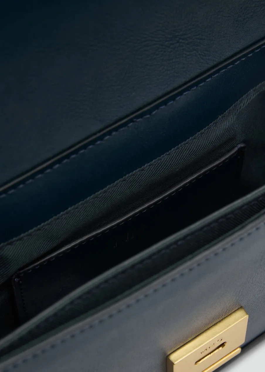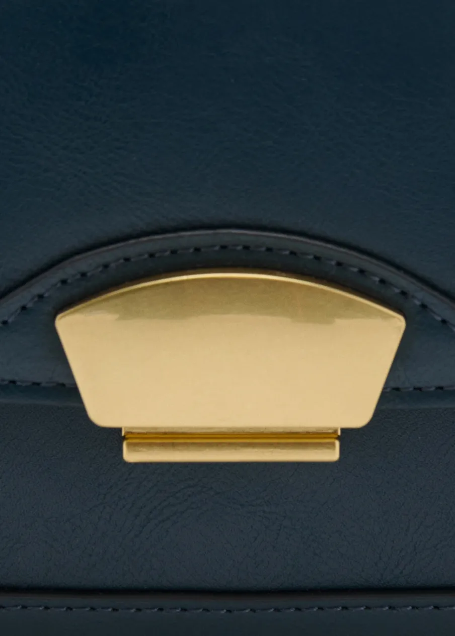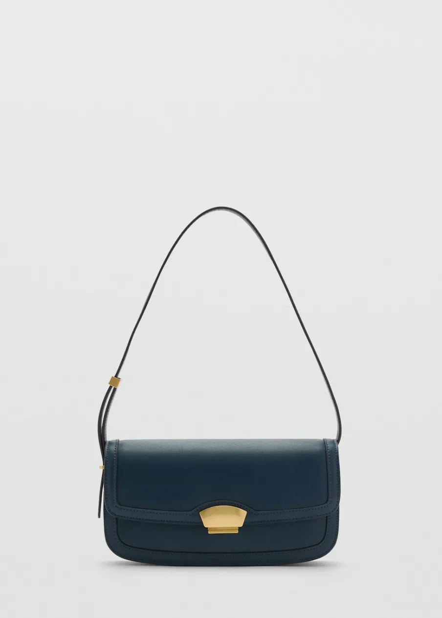 Efekt skóry. Średnia wielkość. Krótki regulowany pasek. Metalowe zapięcie. Zamknięcie na klapę.
