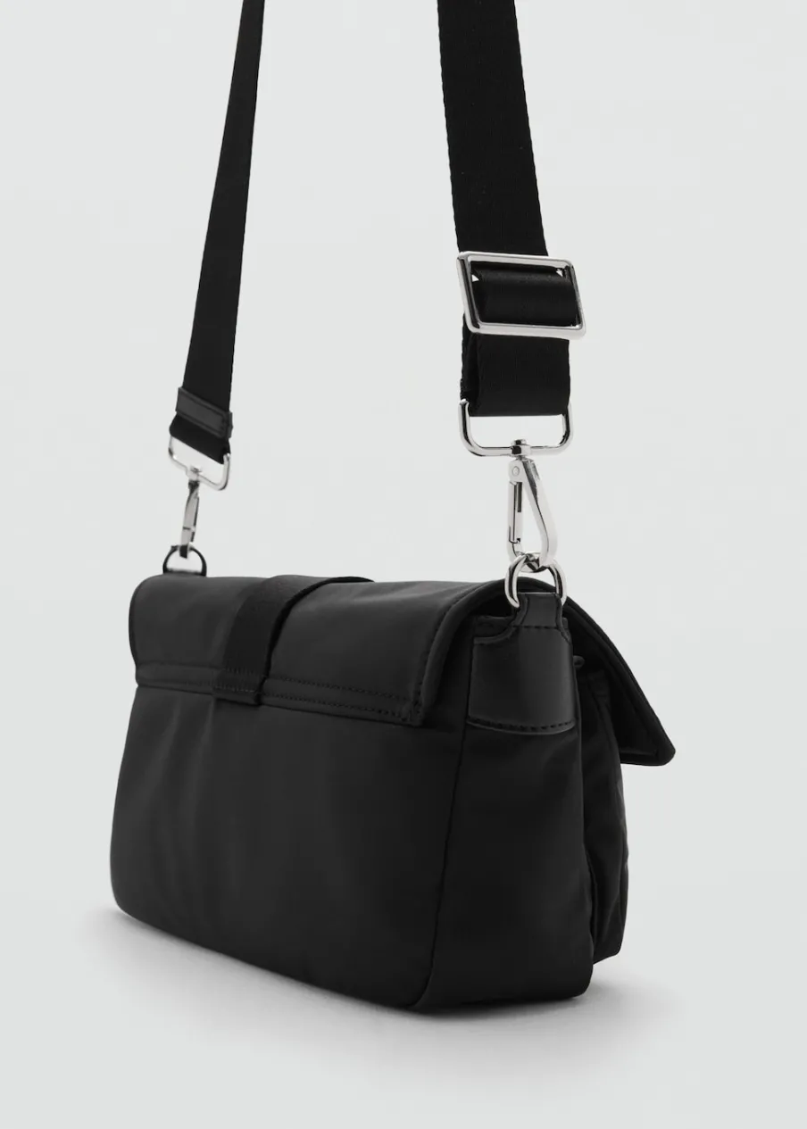 Tkanina nylonowa. Długi uchwyt. Pasek do noszenia na ramieniu. Wewnętrzna kieszeń. Podwójna przegroda. Zamknięcie na klapę. Ukryte zapięcie na magnes. Ozdobna klamra. Wewnętrzna podszewka.