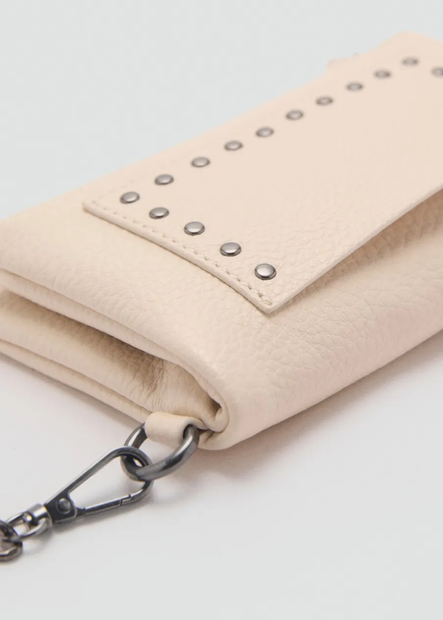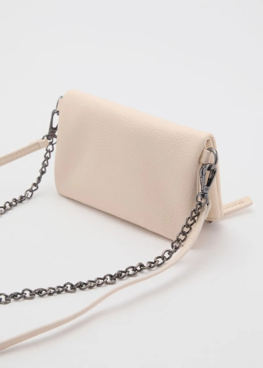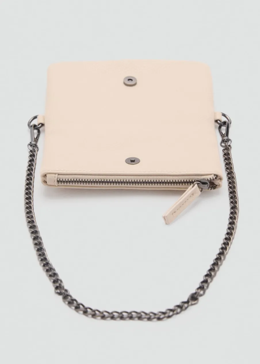 OpisEfekt skóry. Podwójny uchwyt. Łańcuchowy uchwyt. Mała wielkość. Ozdoba z ćwieków. Zapięcie na suwak. Ukryt…