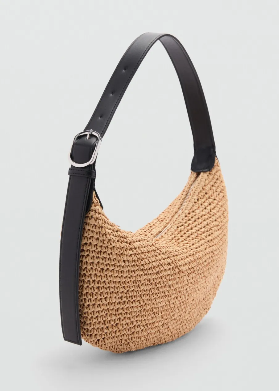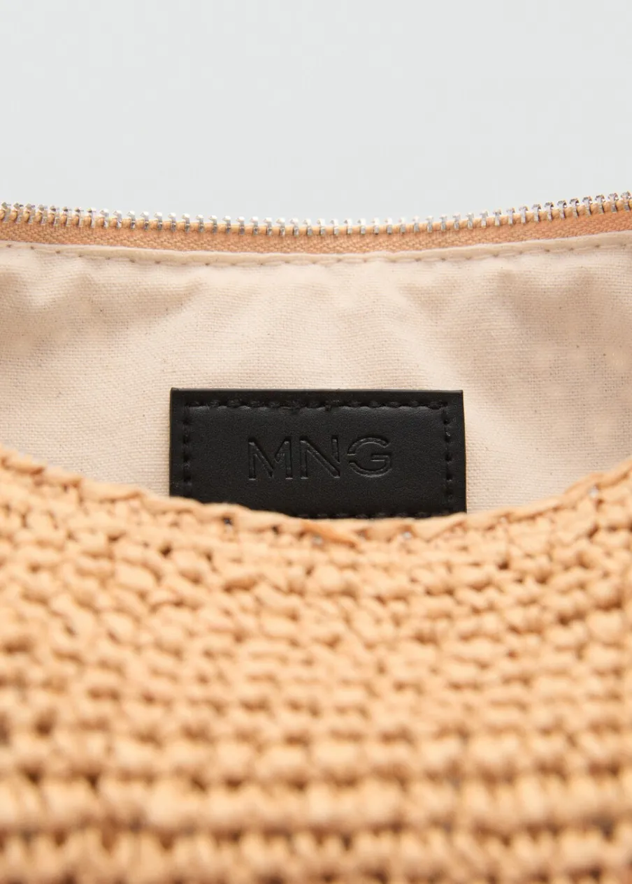 Średnia wielkość. Naturalne włókna. Krótki uchwyt. Kontrastowy uchwyt. Pasek na ramię. Zapięcie na suwak. Wewnętrzna podszewka.