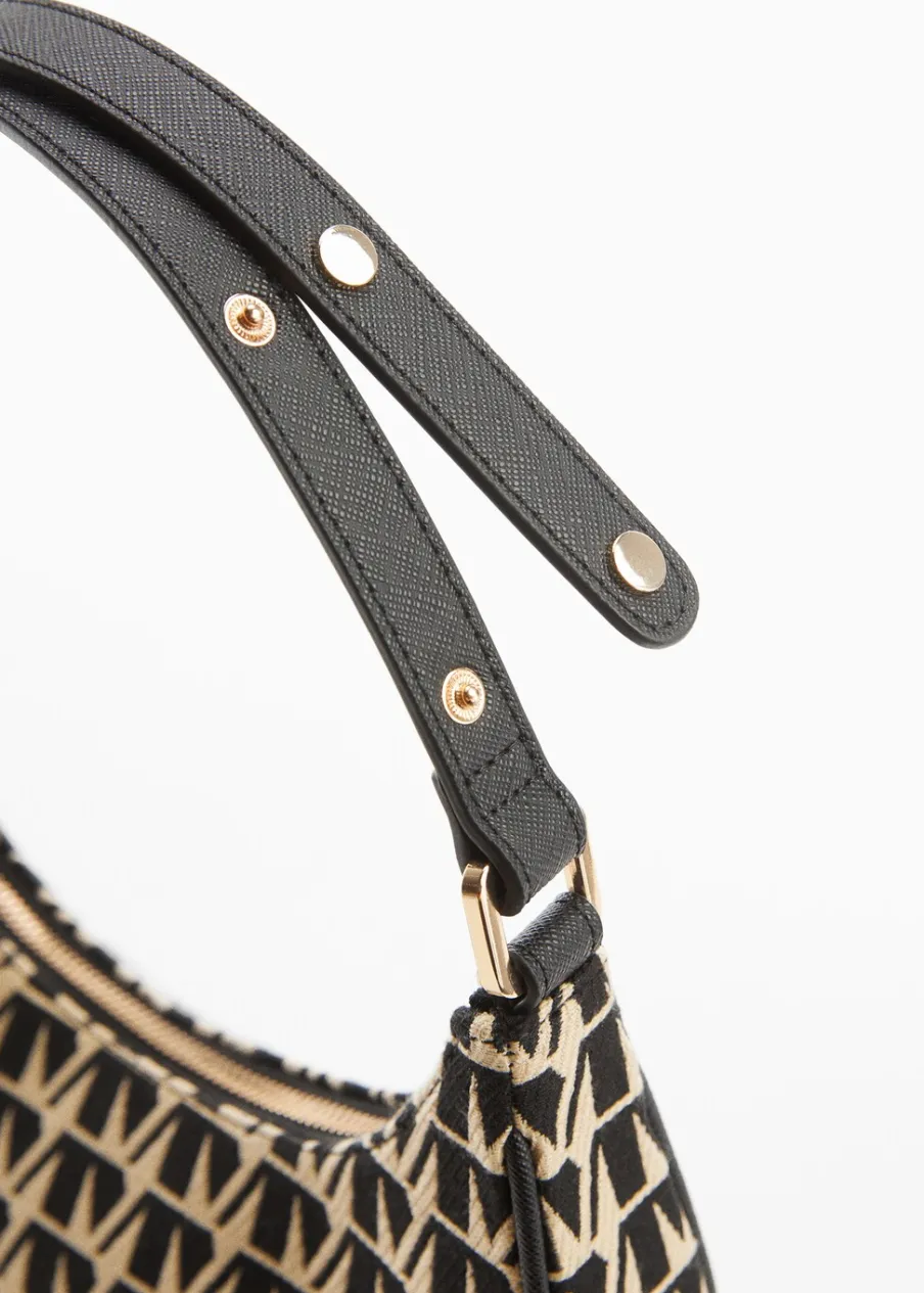 Mała wielkość. Żakardowa tkanina. Pasek na ramię. Regulowany uchwyt. Zapięcie na suwak. Wewnętrzna podszewka.