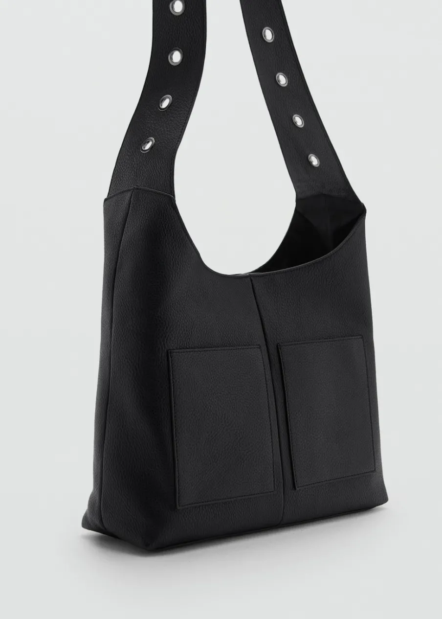 Średni rozmiar. Długi uchwyt. Pasek na ramię. Dwie kieszenie. Wewnętrzna kieszeń. Wewnętrzna podszewka. Zapięcie na zatrzaskowy guzik.