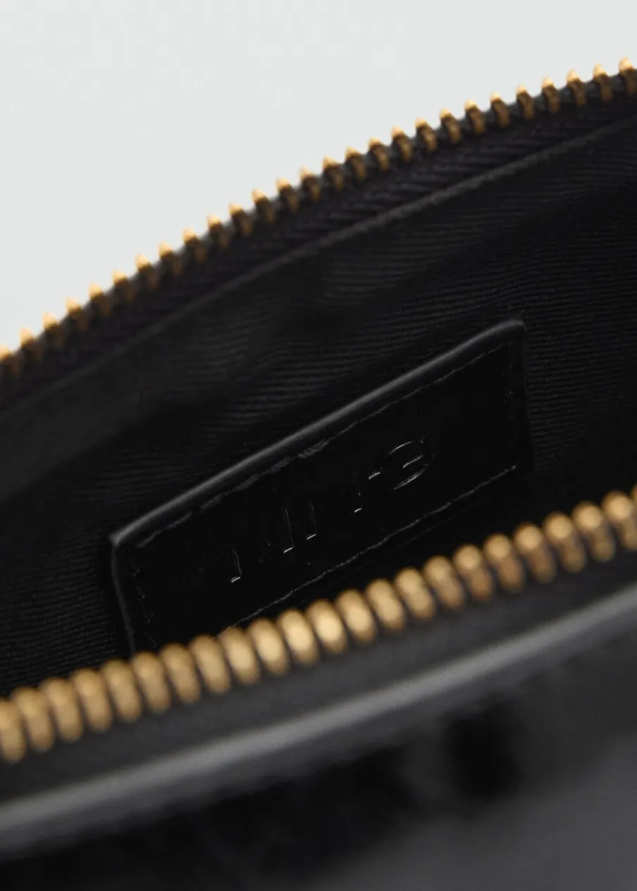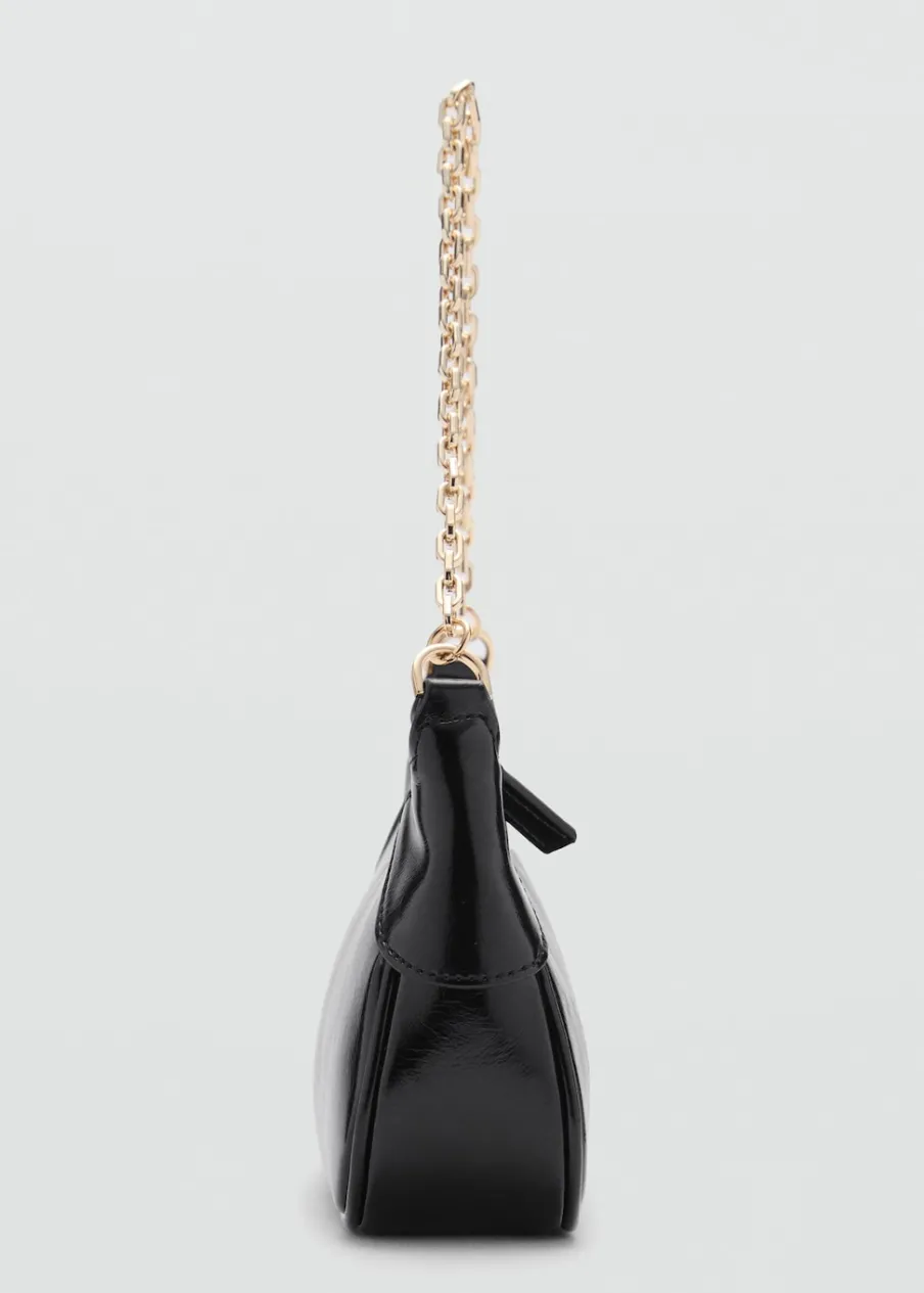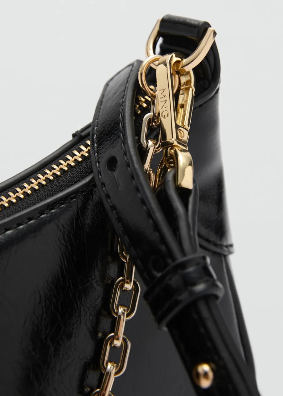 Efekt skóry. Mała wielkość. Podwójny uchwyt. Długi, regulowany uchwyt. Krótki łańcuchowy uchwyt. Zapięcie u góry na suwak.